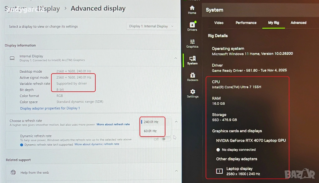 Поддръжка на G-SYNC и на ADAPTIVE SYNC.
