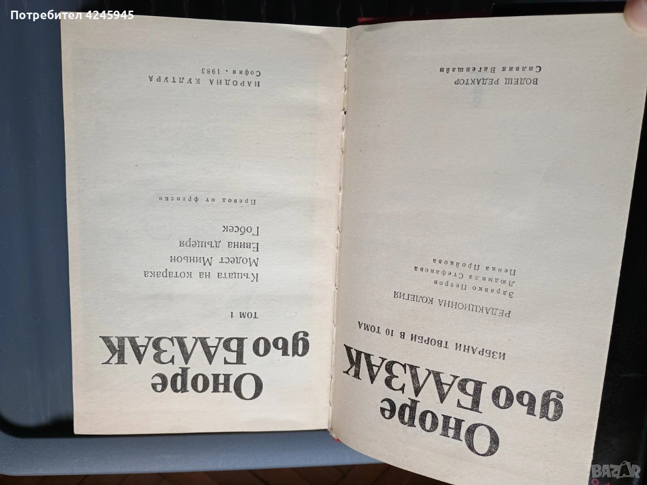 Продавам пълен комплект от 10 тома на Оноре дьо Балзак, издание 1983 г. – „Избрани творби“, в непипано състояние, запазено от момента на покупката.