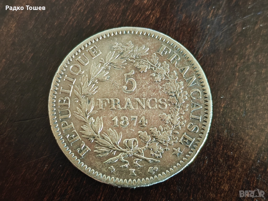 Франция 5 франка 1874 СРЕБРО → Обява 53484497