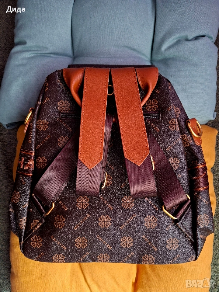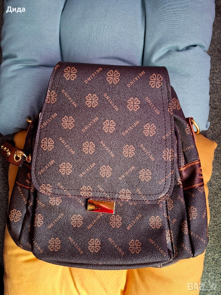 НОВА Раница в тъмнокафяво с шарка на детелини → Обява 53484573
