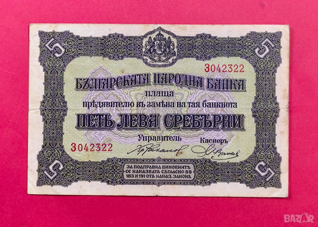 5 лева 1917 година България VF → Обява 53484579