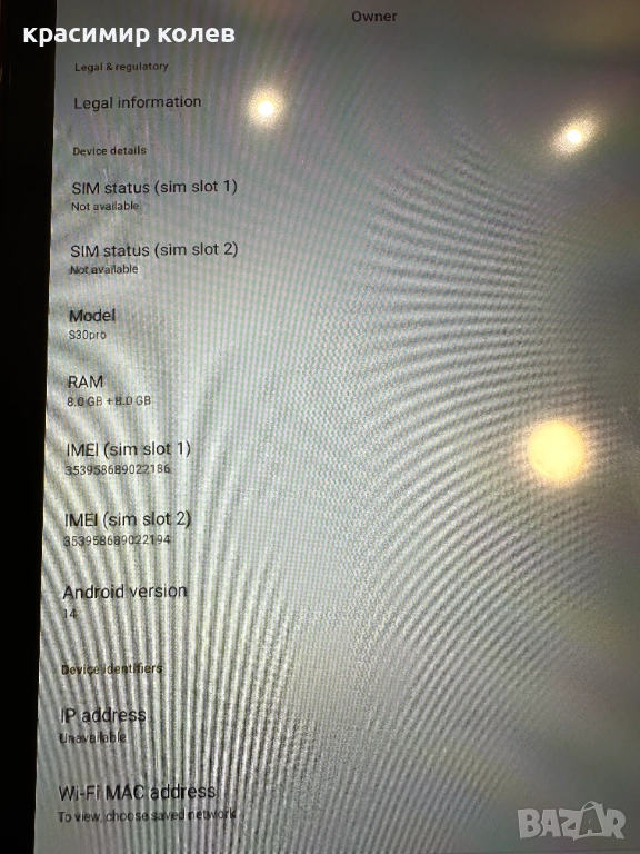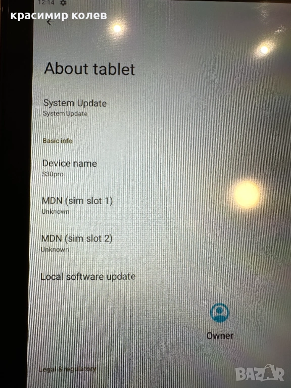 Таблетът е като нов.Работи отлично.Има калъф.Продава се без кабел и адаптер.Може да работи като смартфон.Размер на екрана 10,5 инча.Рам 8 гб , памет 256 гб.