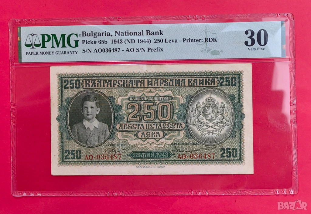 250 лева 1943 година България - серия АО
