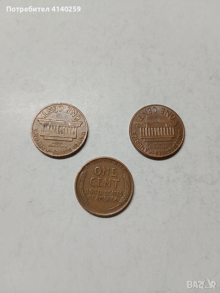 САЩ МОНЕТИ 1 ЦЕНТ 1946-1959-1960 Г ЦЕНА ЗА 3 БРОЯ НЕЧИСТЕНИ СЪСТОЯНИЕ ОТЛИЧНО ПОЛУЧАВАТЕ СНИМАНИТЕ МОНЕТИ РАЗГЛЕДАЙТЕ ДРУГИТЕ МИ ОБЯВИ ДА КОМБИНИРАТЕ ДОСТАВКА ЕКОНТ ЗА ВАРНА ЛИЧНО