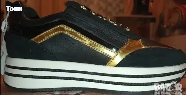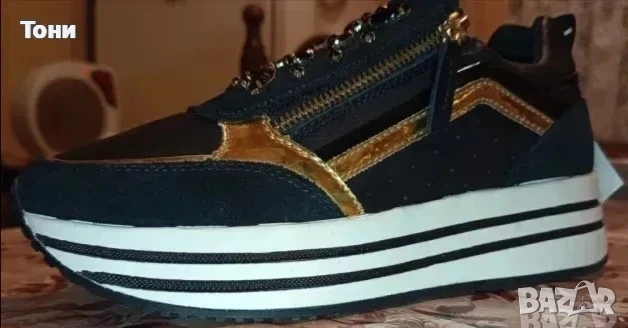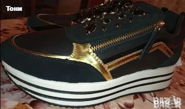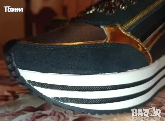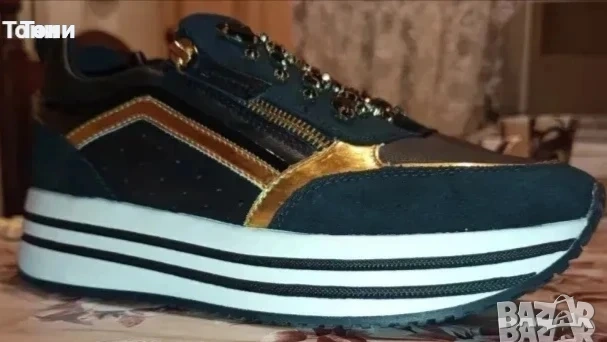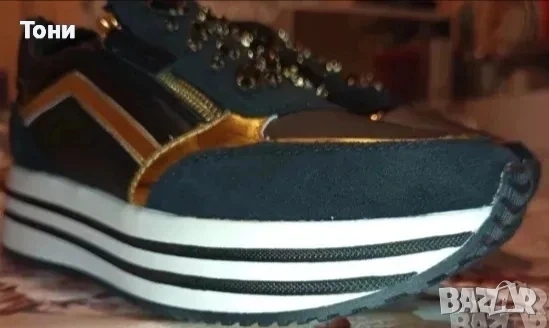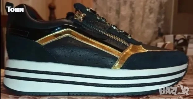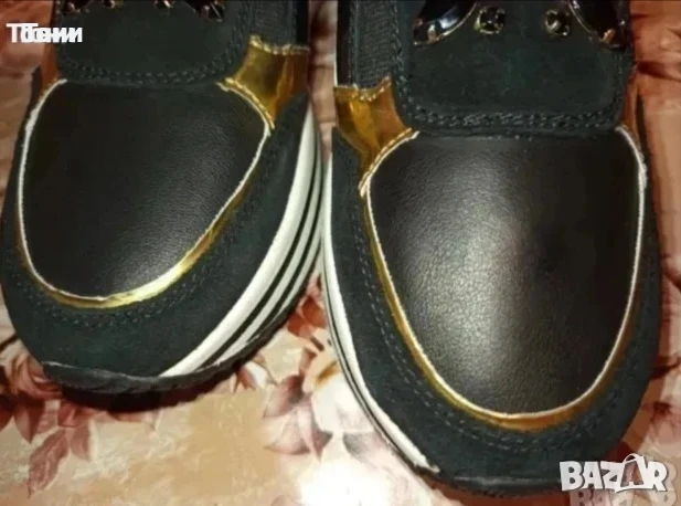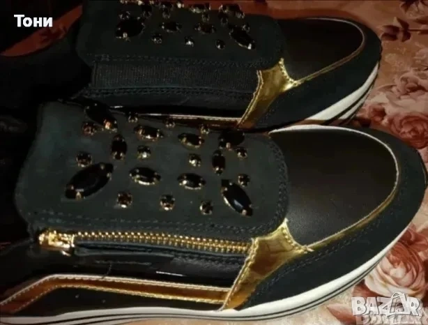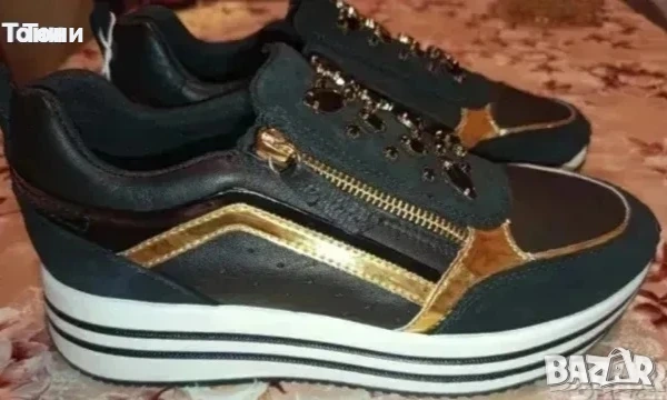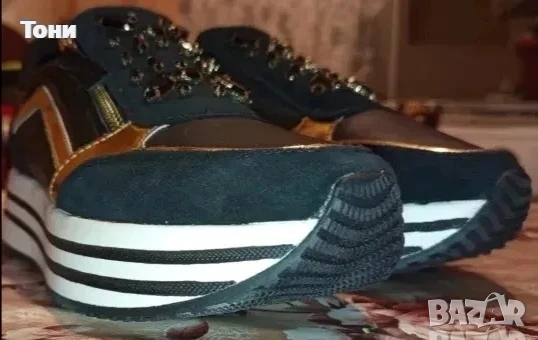 GEOX RESPIRA ORIGINAL Луксозни Маркови Италиански Дамски Маратонки Изцяло от Натурална Естествена Кожа. Украсени с шити камъчета и златисти орнаменти. С Етикет.
