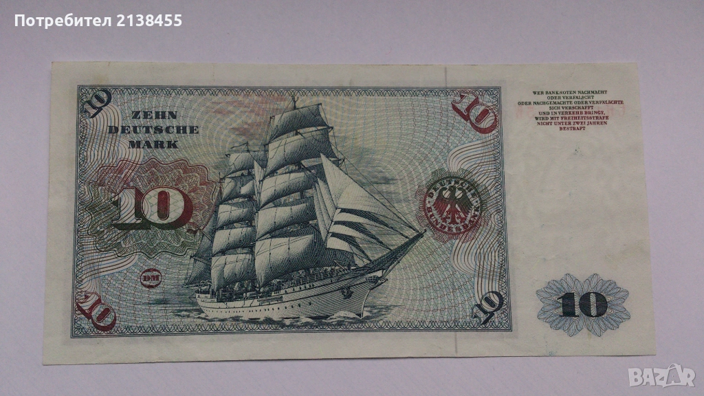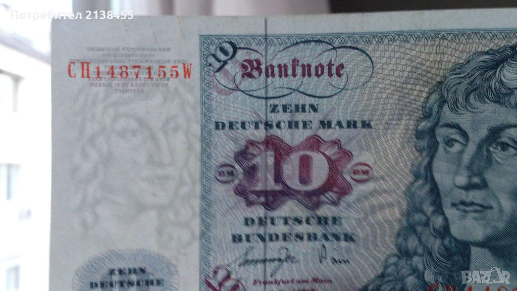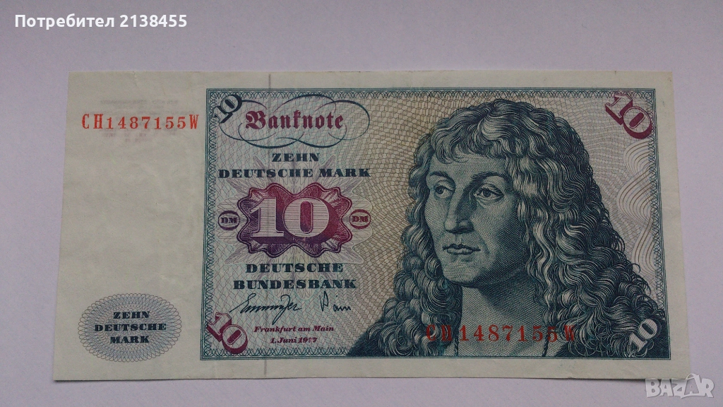 Отлична банкнота от 10 марки 1977 година - Западна Германия → Обява 53485632