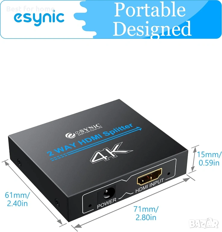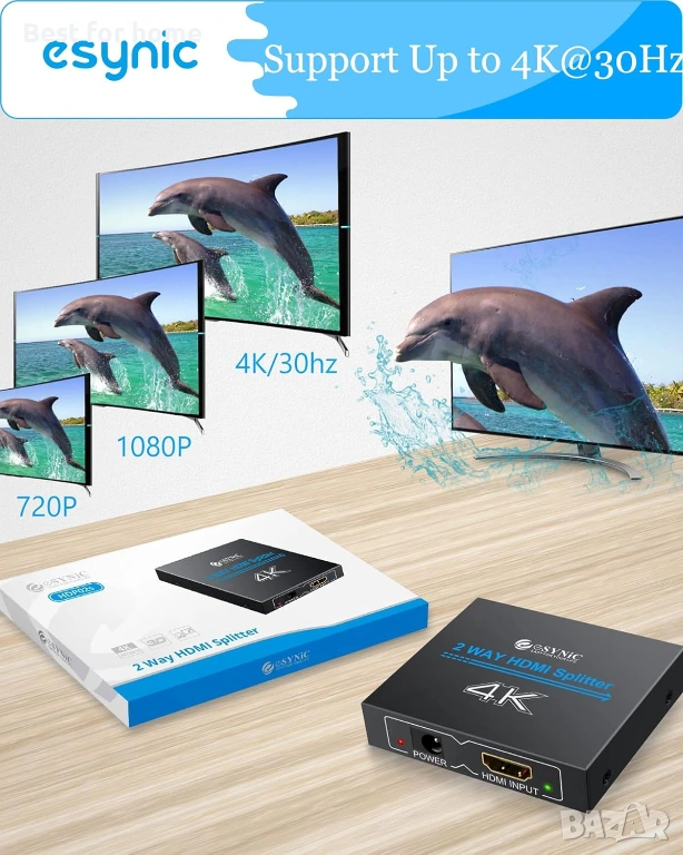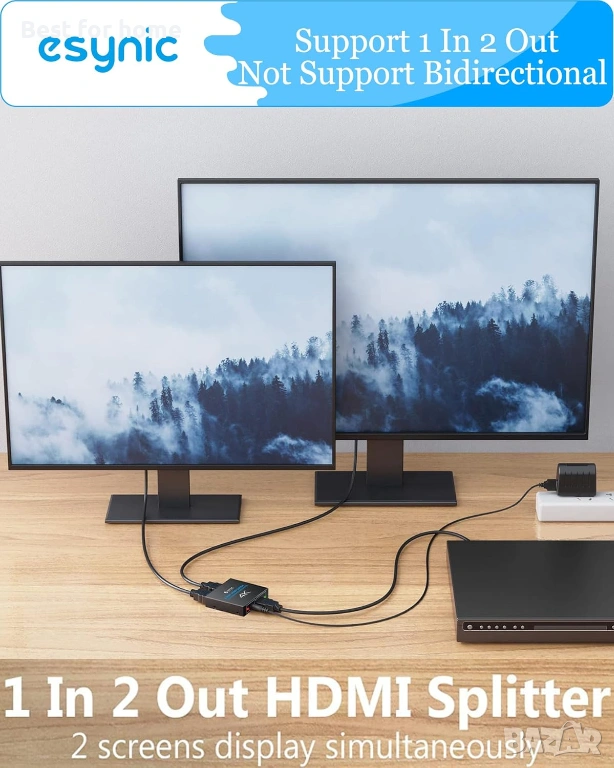 𝐞𝐒𝐲𝐧𝐢𝐜 𝐏𝐫𝐨𝐟𝐞𝐬𝐬𝐢𝐨𝐧𝐚𝐥 𝟏 𝐢𝐧 𝟐 𝐨𝐮𝐭 𝟒𝐊 𝐇𝐃𝐌𝐈 𝐒𝐩𝐥𝐢𝐭𝐭𝐞𝐫: Нашият eSynic професионален 4K HDMI сплитер (HDcp сплитер) преобразува 1 HDMI източник към 2 HDMI дисплея на телевизора едновременно. Може да се използва не само у дома, в офиса, но и за големи екрани в търговски центрове и др.