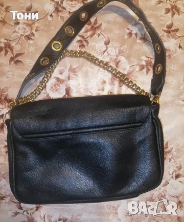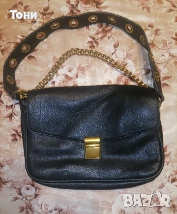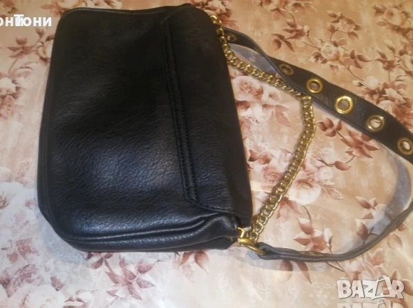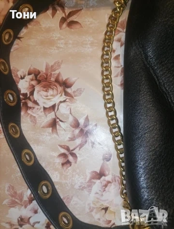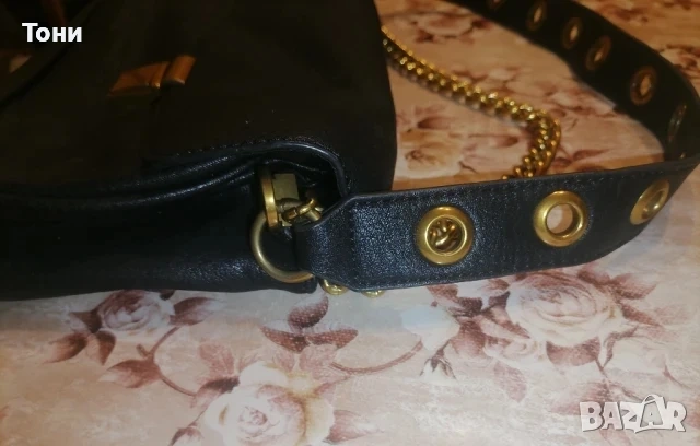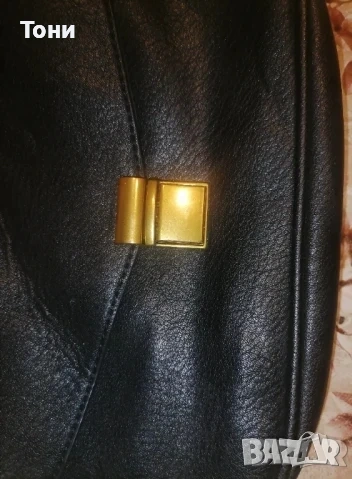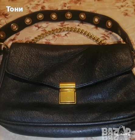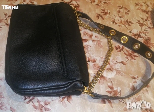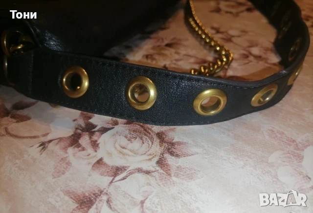Чисто Нова Дамска Черна Чанта Изцяло от Натурална Естествена Кожа. Със златист синджир и красива дръжка.