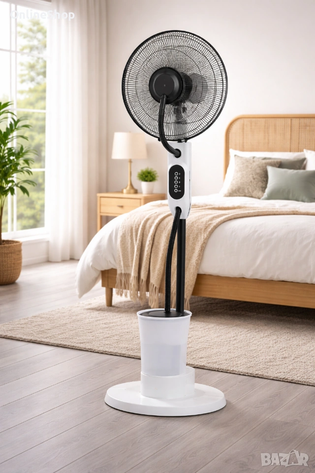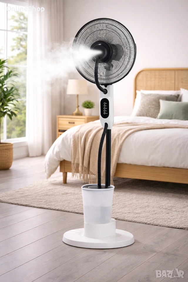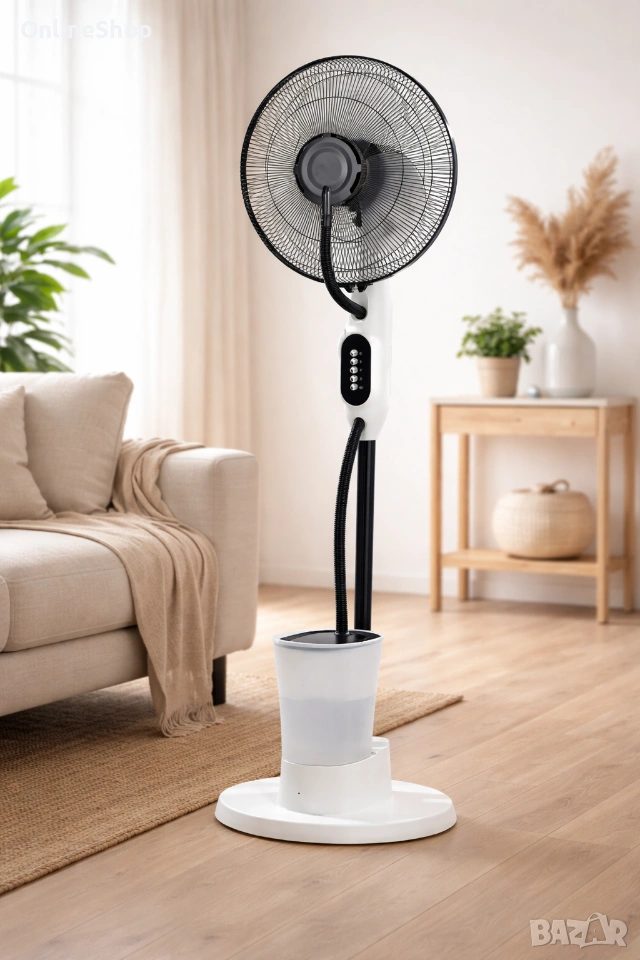 Вентилатор с водна мъгла. 3 скорости на работа. Мощност 75W. Автоматична осцилация.