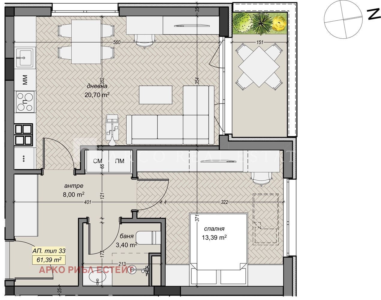 Дневна с трапезария и кухненски бокс - 20.70 кв.м.