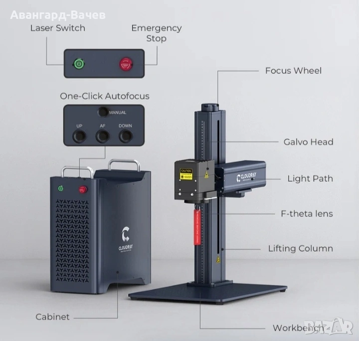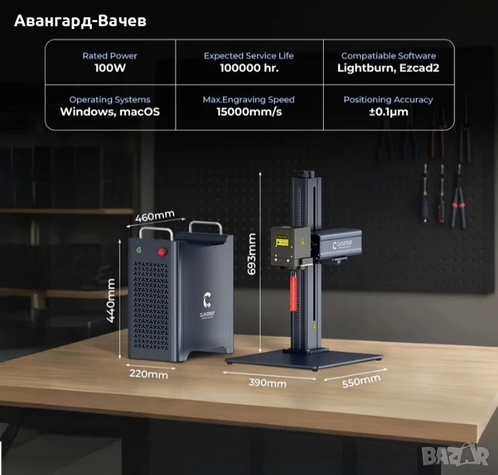 Cloudray GM серия GM-2.5D-100 100W автофокус Mopa фибърен лазерен гравер с електрическа повдигаща колона.