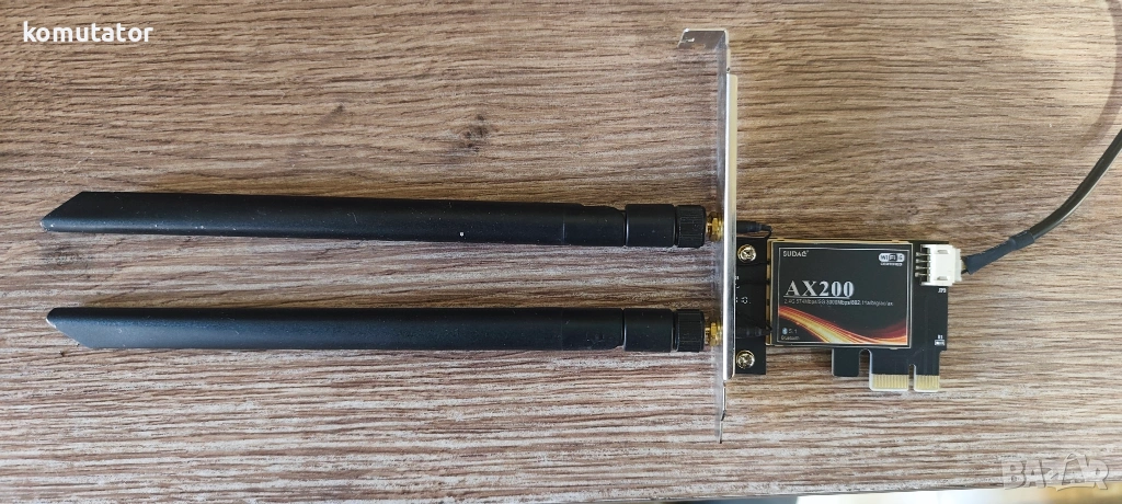 Продавам безжична мрежова карта с чип Intel AX200, подходяща за настолен компютър. Осигурява бърза и стабилна връзка чрез WiFi 6 технология и Bluetooth 5.0.