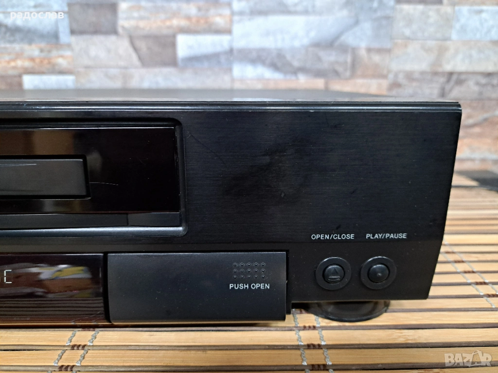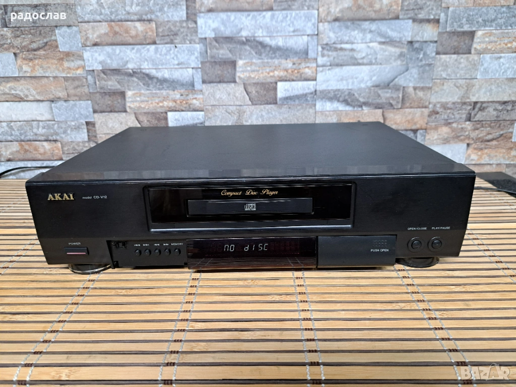 CD плейър Akai CD-V12 е в добро състояние, чете оригинални и пиратски дискове. Липсва едното декоративно капаче.
