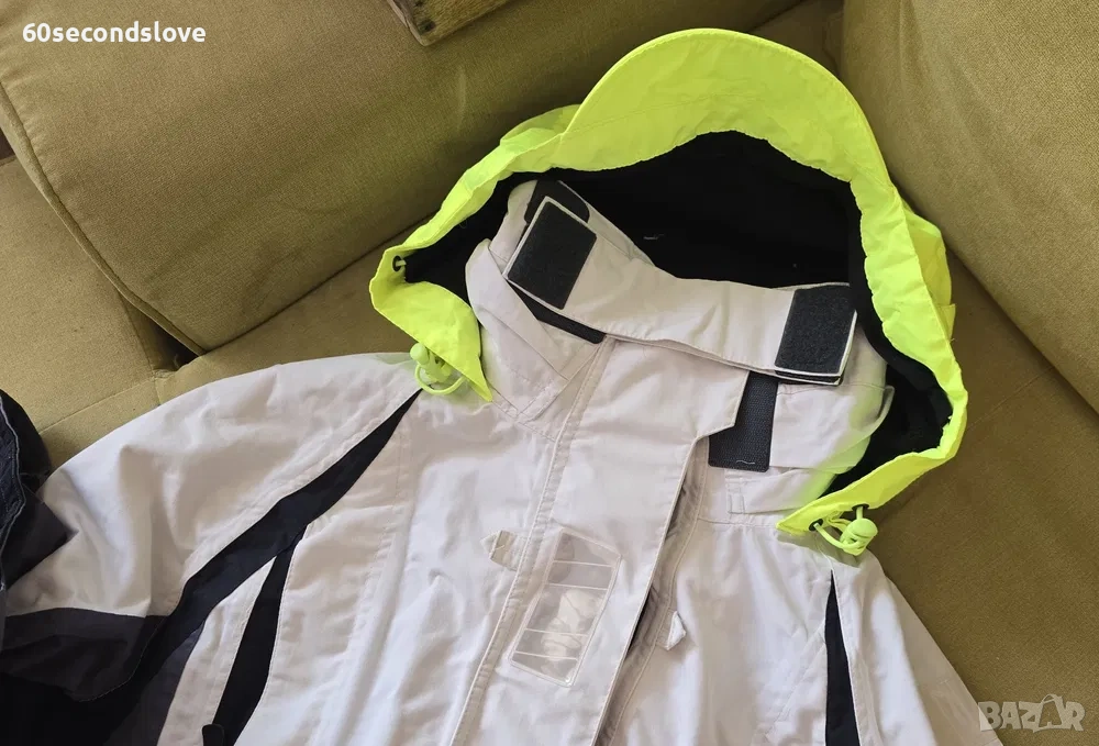 Ски / сноуборд екипът е носен 2 сезона. Много запазен, с минимални следи от употреба. Цветовете са: бяло, графитено сиво и флуорисцентно зелено.