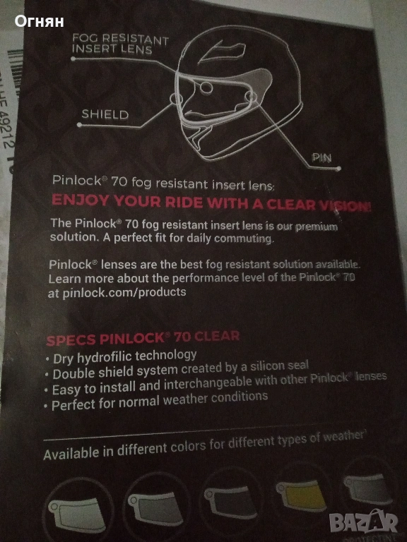Антифог плака Pinlock 70 за каска O'NEAL A-SRS → Обява 53487064