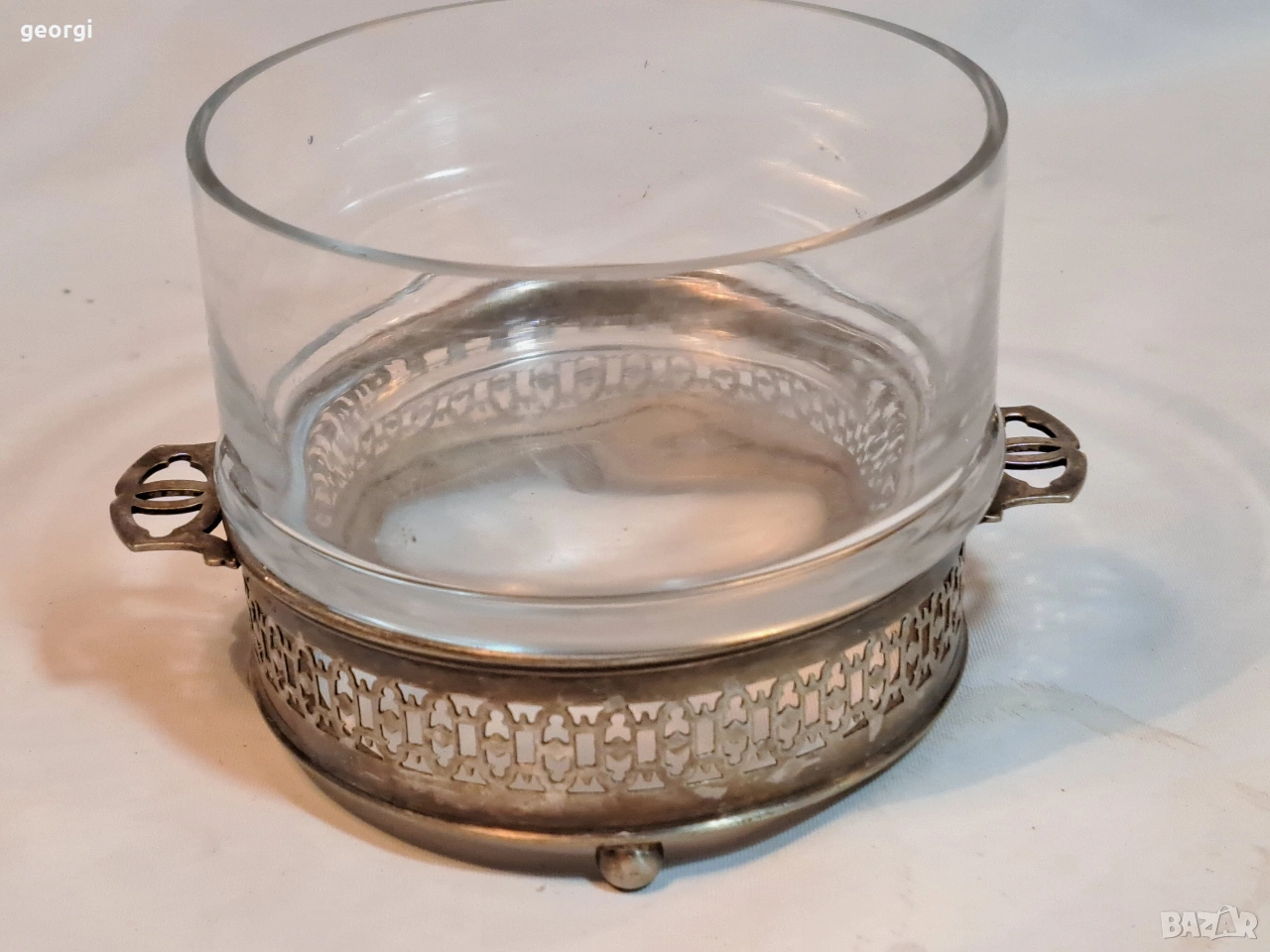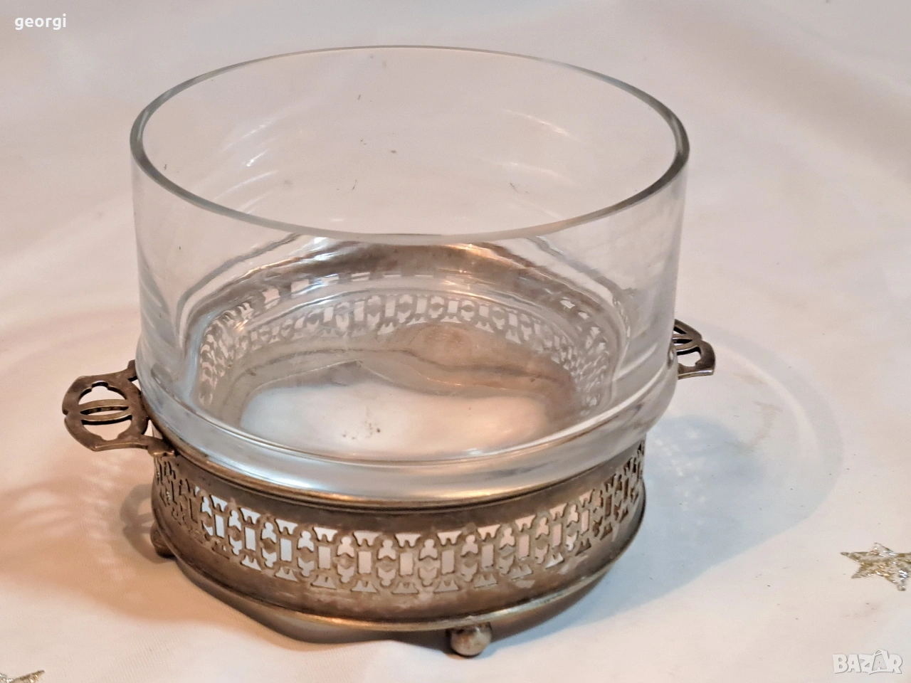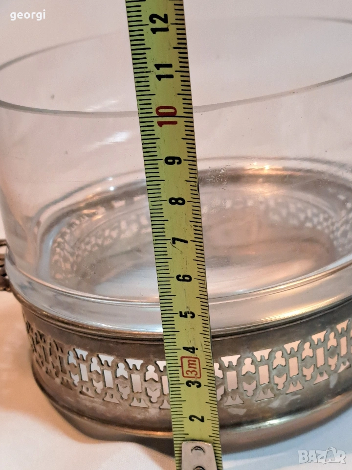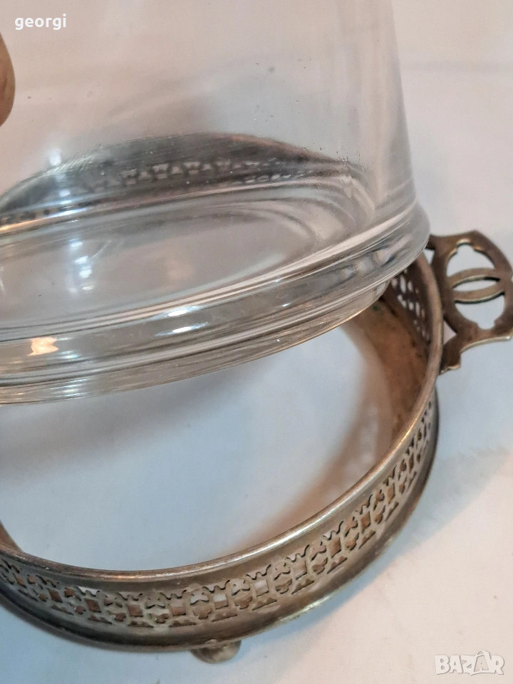 стъклена бонбониера с посребрен пиедестал 33/2 → Обява 53487131