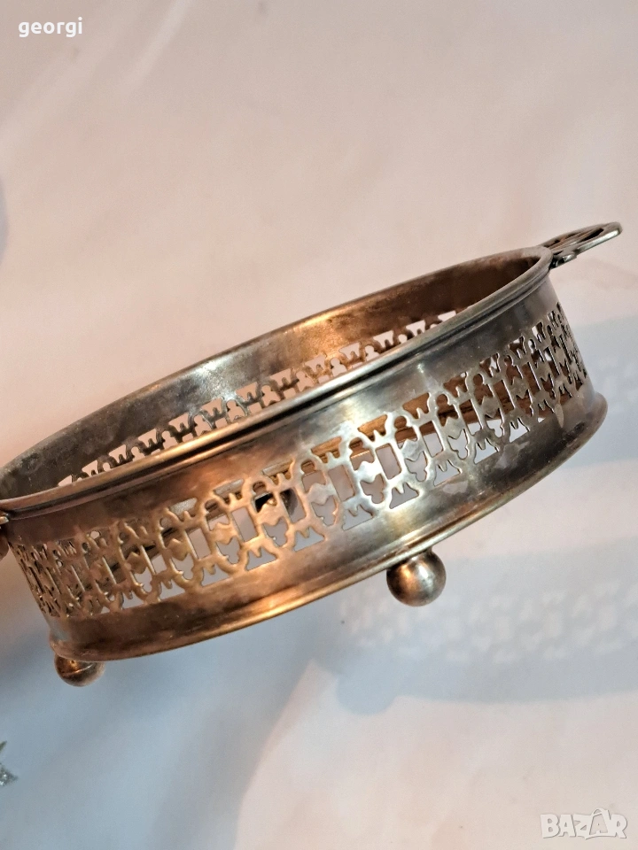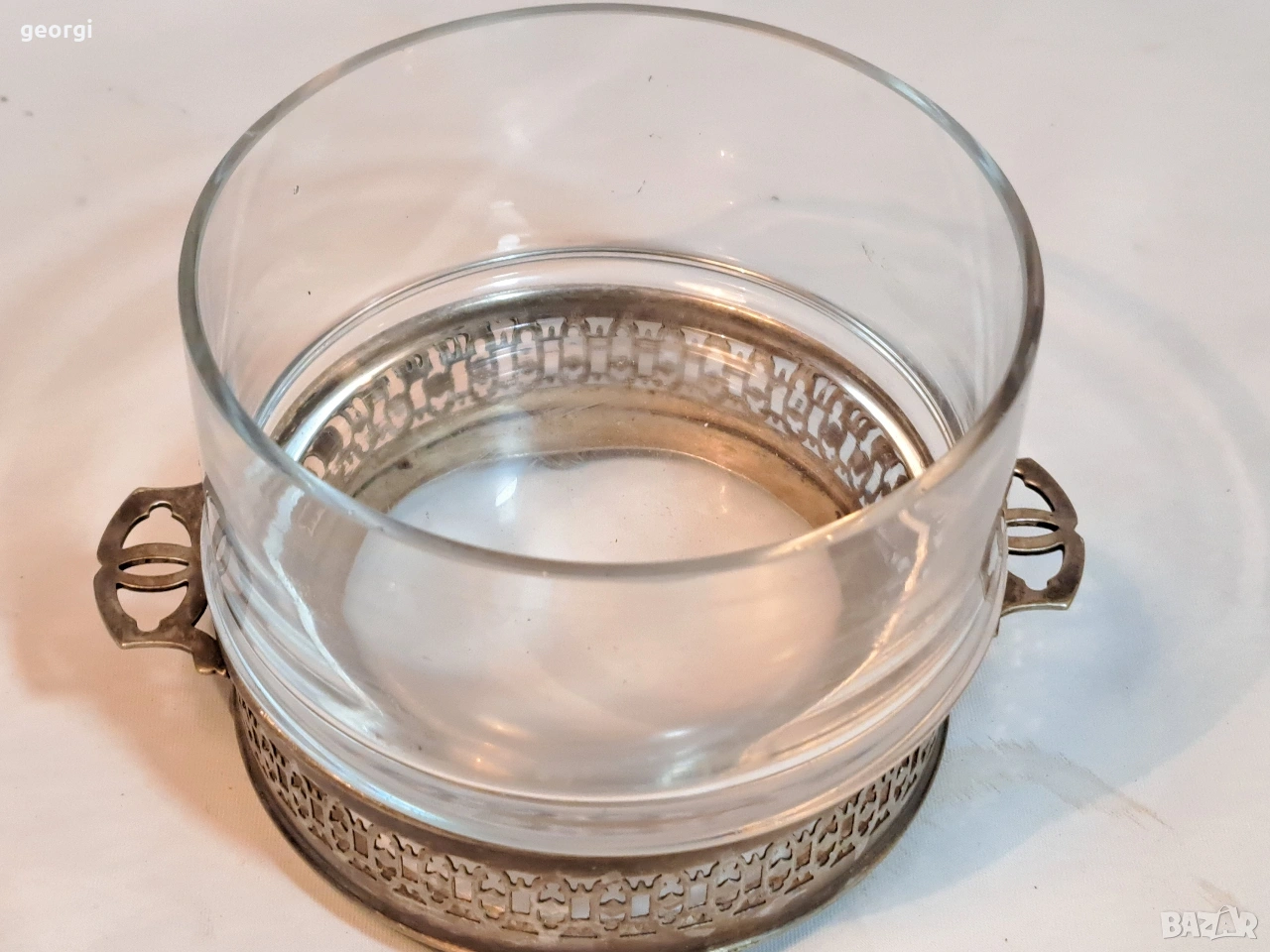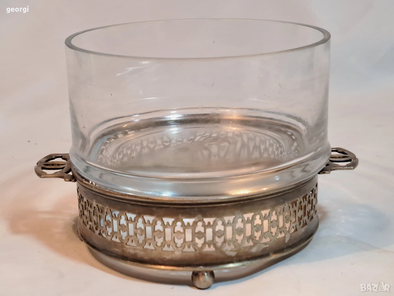 стъклена бонбониера с посребрен пиедестал 33/2 → Обява 53487131