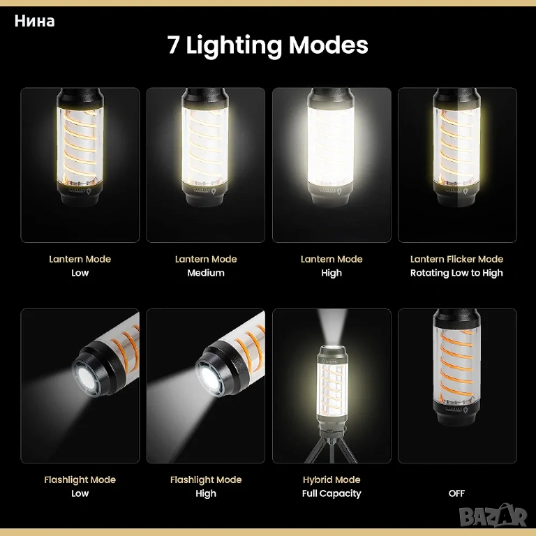 Многофункционална лампа с мини статив, зареждаема с USB → Обява 53487186