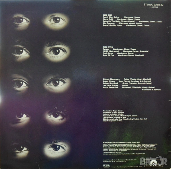 Rainbow – Straight Between The Eyes, Germany LP в много добро състояние. Цена 24.00 евро.