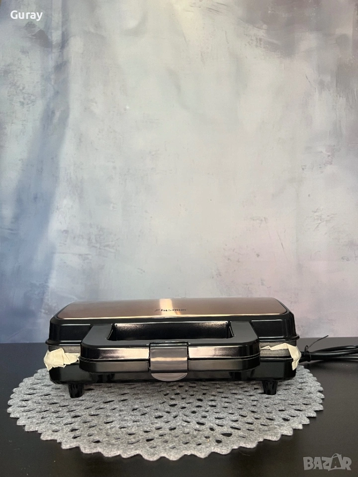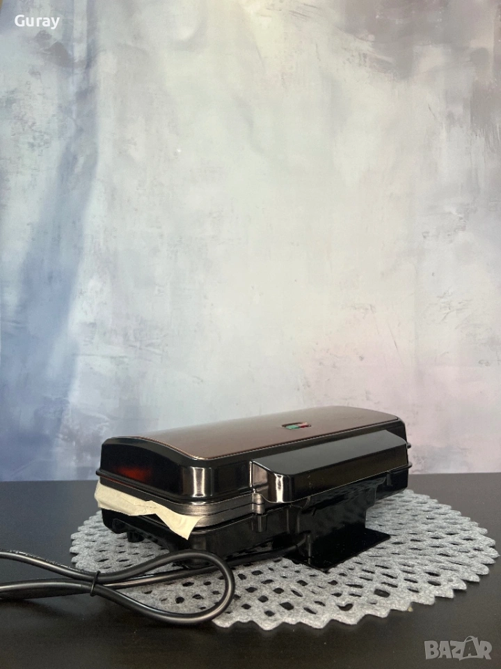 Продавам Уред за сандвичи в отлично техническо и визуално състояние. Уредът е внос, тестван е внимателно и работи безупречно. Идеален за тези, които търсят качество на разумна цена.