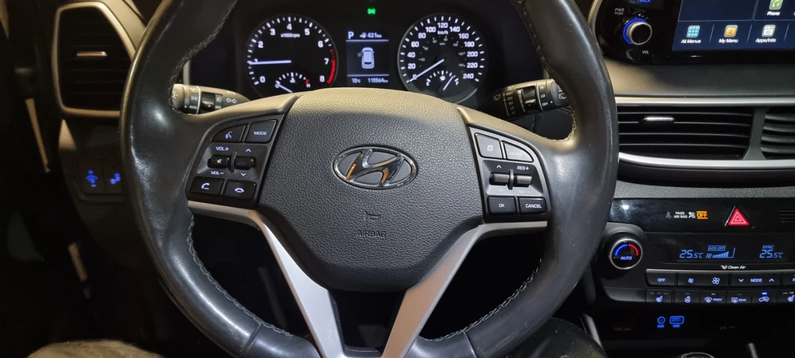Продавам Hyundai Tucson 2. 4 GDI (2359 куб. см), 6-степенен автоматик SHIFTRONIC, AWD. Колата е в много добро техническо и визуално състояние, кара се ежедневно и няма нужда от никакви вложения. Двигателят работи тихо и равномерно, кутията превключва плавно. Окачването е стегнато, без тропане. Интериорът е сравнително запазен, предвид семеен автомобил. Багажникът е просторен (878 л), има резервна гума и авариен комплект. Оборудване: двузонов климатроник, cruise control, lane assist, мултифункционален волан, Bluetooth/Handsfree, USB, подгрев на седалки, електрически стъкла и огледала, ABS, дискови спирачки отпред и отзад и др. Реално пълна екстра за модела. Продава се с два ключа и 2 комплекта джанти зимни 18 и летни19. Има монтирана стъпенка (рядка екстра, не се предлага стандартно за европейския пазар). Гражданска отговорност е платена до юни включително. Колата може да се види и тества почти по всяко време, възможна е проверка в сервиз по избор. Разумен коментар на цената след оглед.