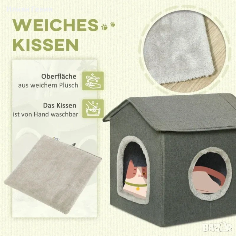 Мека възглавница: Котешкото легло има мека възглавница, където вашите космати приятели могат да спят спокойно. За лесно почистване цялата възглавница може да се пере в пералня.