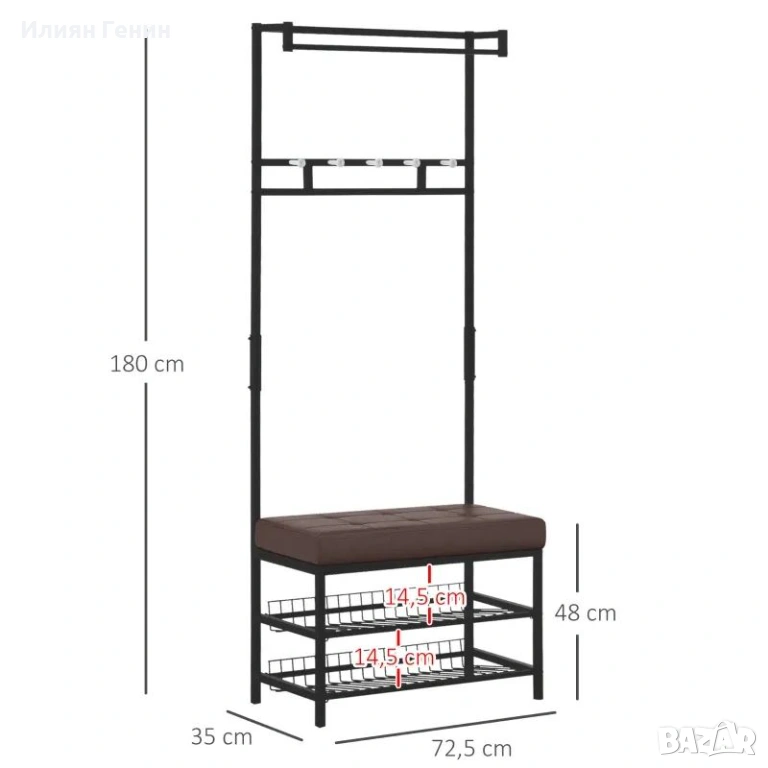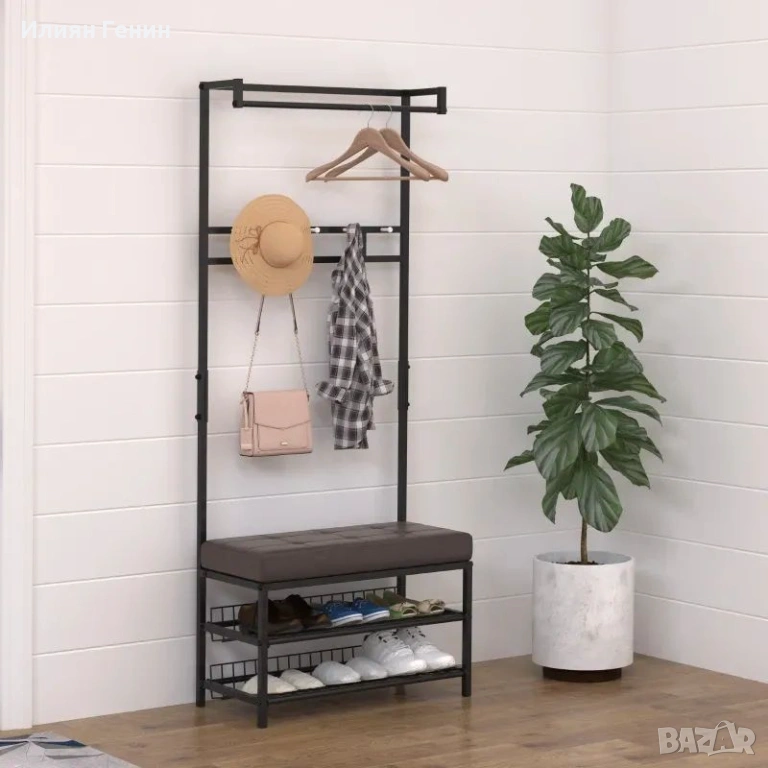 ✔ 1 x закачалка за палта с рафтове за обувки и пейка