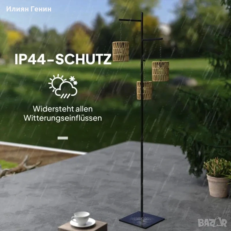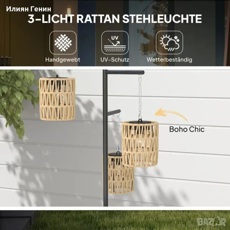 ✔ Ратановата лампа с три лампички осигурява ярко външно осветление
