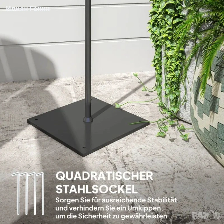 ✔ Широка стоманена основа с колчета за стабилност