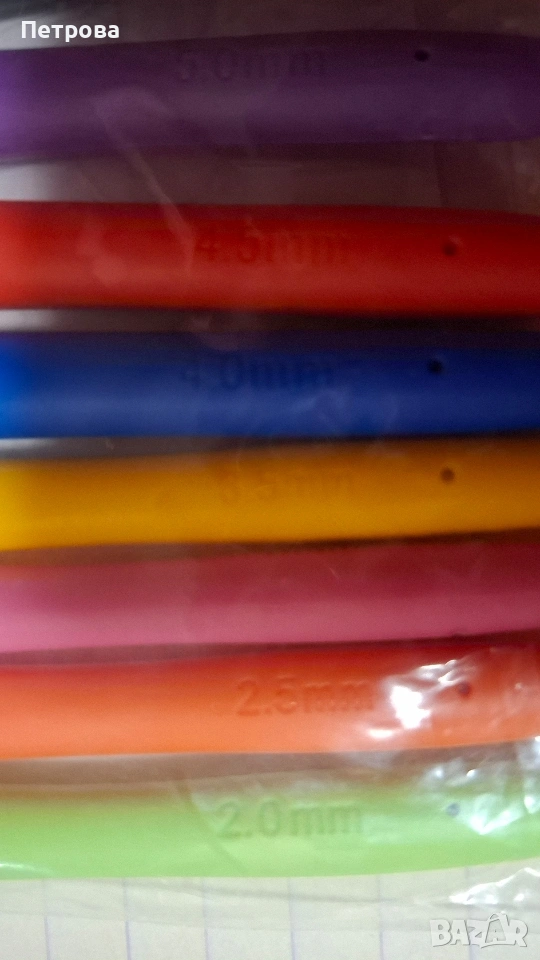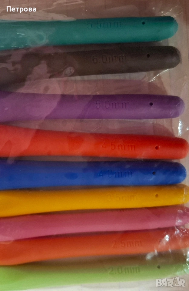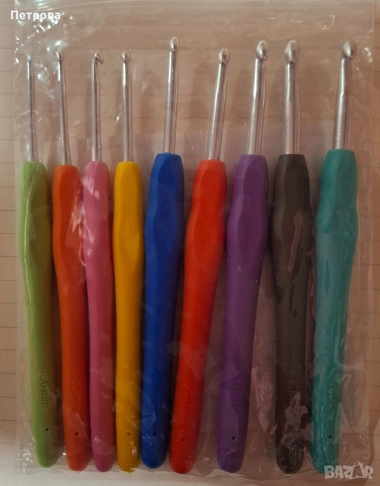 Комплект куки за плетене с номера 2, 2.5, 3, 3.5, 4, 4.5, 5, 5.5 и 6. Много удобни и леки.