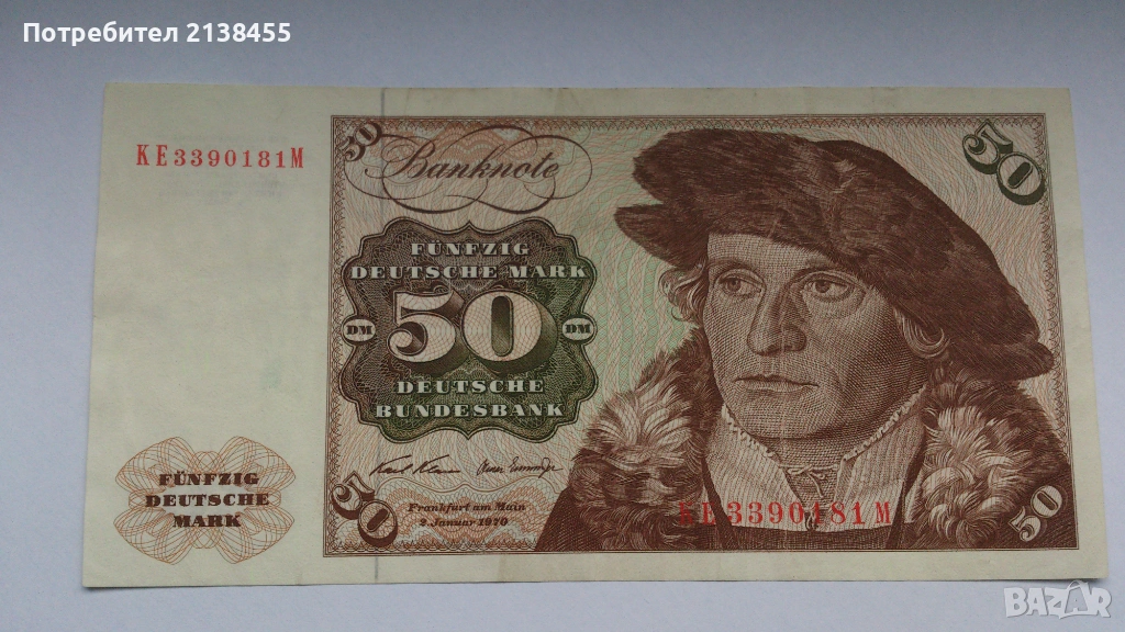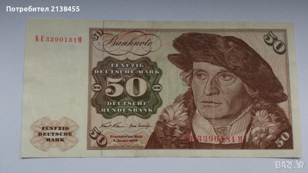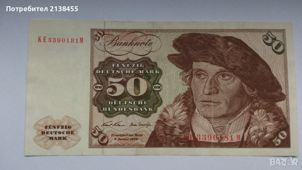 Банкнота от 50 марки 1970 година - Западна Германия → Обява 53487659