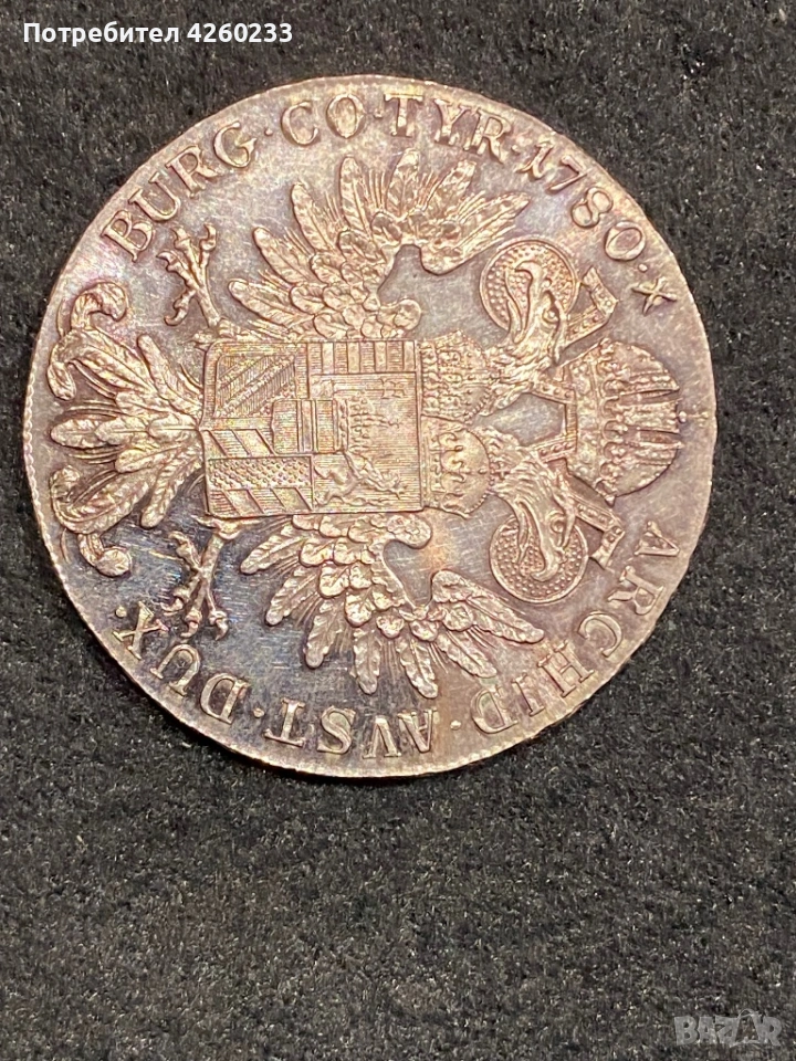 Продава се: Сребърен талер „Мария Тереза“ – 1780 г. Историческа сребърна монета – Талер на Мария Тереза от 1780 г.