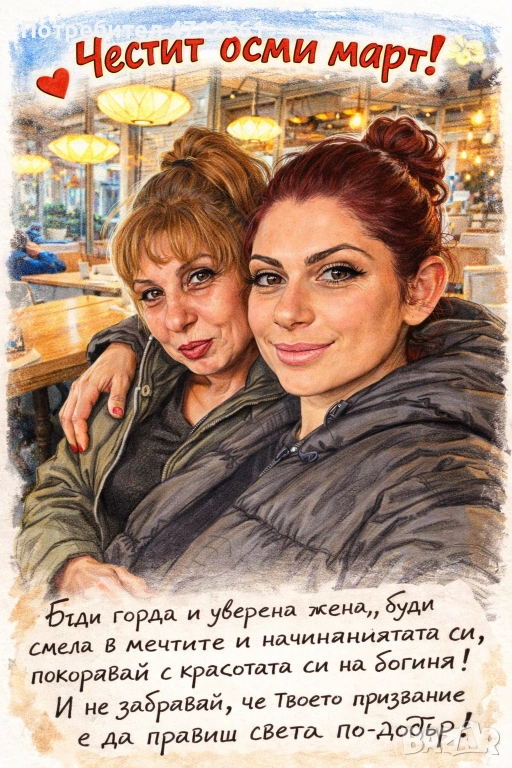 Карикатура за 8 март с текст и снимка по избор 10€ → Обява 53487715