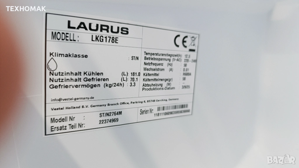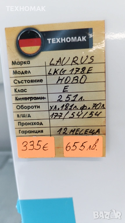 Хладилник с фризер за вграждане LAURUS височина 177 см. ширина 54см. дълбочина 54см. → Обява 53487917