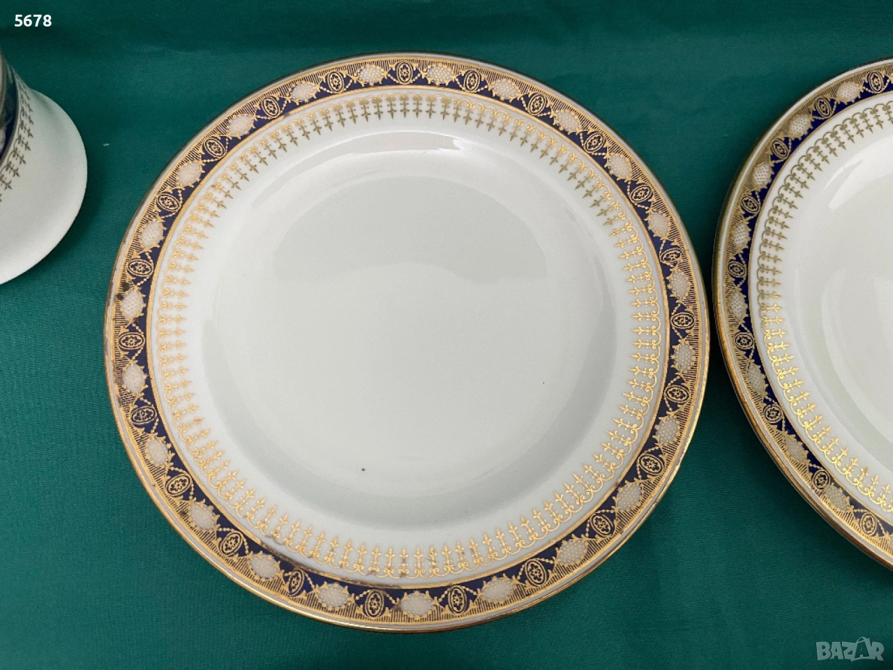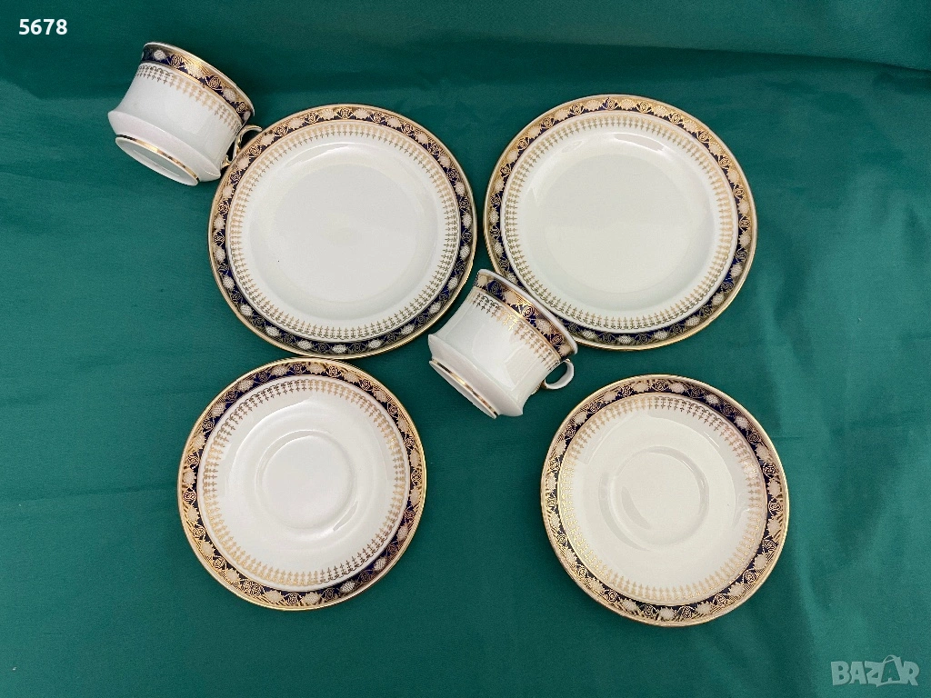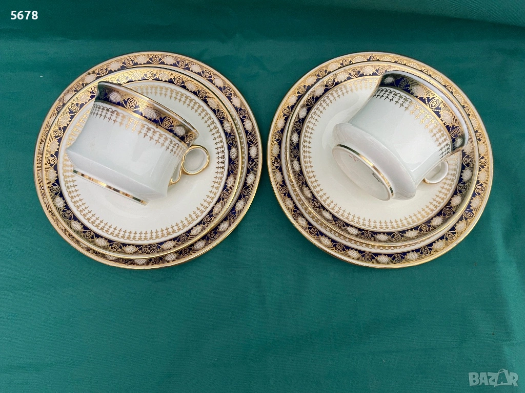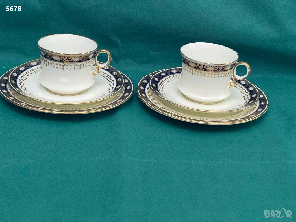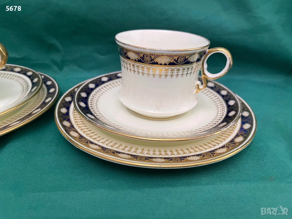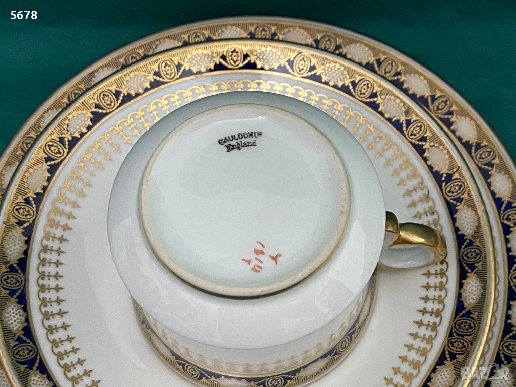 Троен сет, състоящ се от чаша-180мл., подложна чиния-14см., десертна чиния -17,5см. Произведен в периода между 1904 и 1920г. от Cauldon Ltd, England. Антикварна находка в много добро състояние.