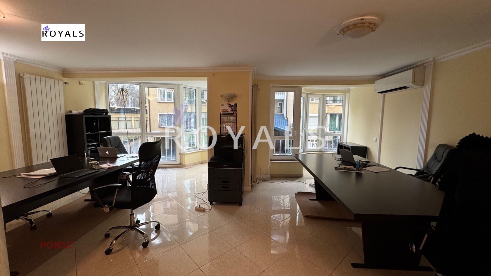 Оферта 39109 Роялс Ви предлагат офис под наем , в кв. 'Лозенец', на 3 мин до метро станция 'Европейски съюз', хотел 'ХЕМУС', търговски център - CITY PARK CENTAR . Офиса се има три самостоятелни стаи - една обща , която се вижда на снимките, една самостоятелна за срещи, една заседателна зала - обща за всички. Кухненски бокс за хранене, една тоалетна - за мъже, една баня и тоалетна - за жени, килер, тераса. За огледи - Тенева - 0878 20 44 50. Отоплението е на климатик, има ограничен достъп до сградата и портиер с работно време.