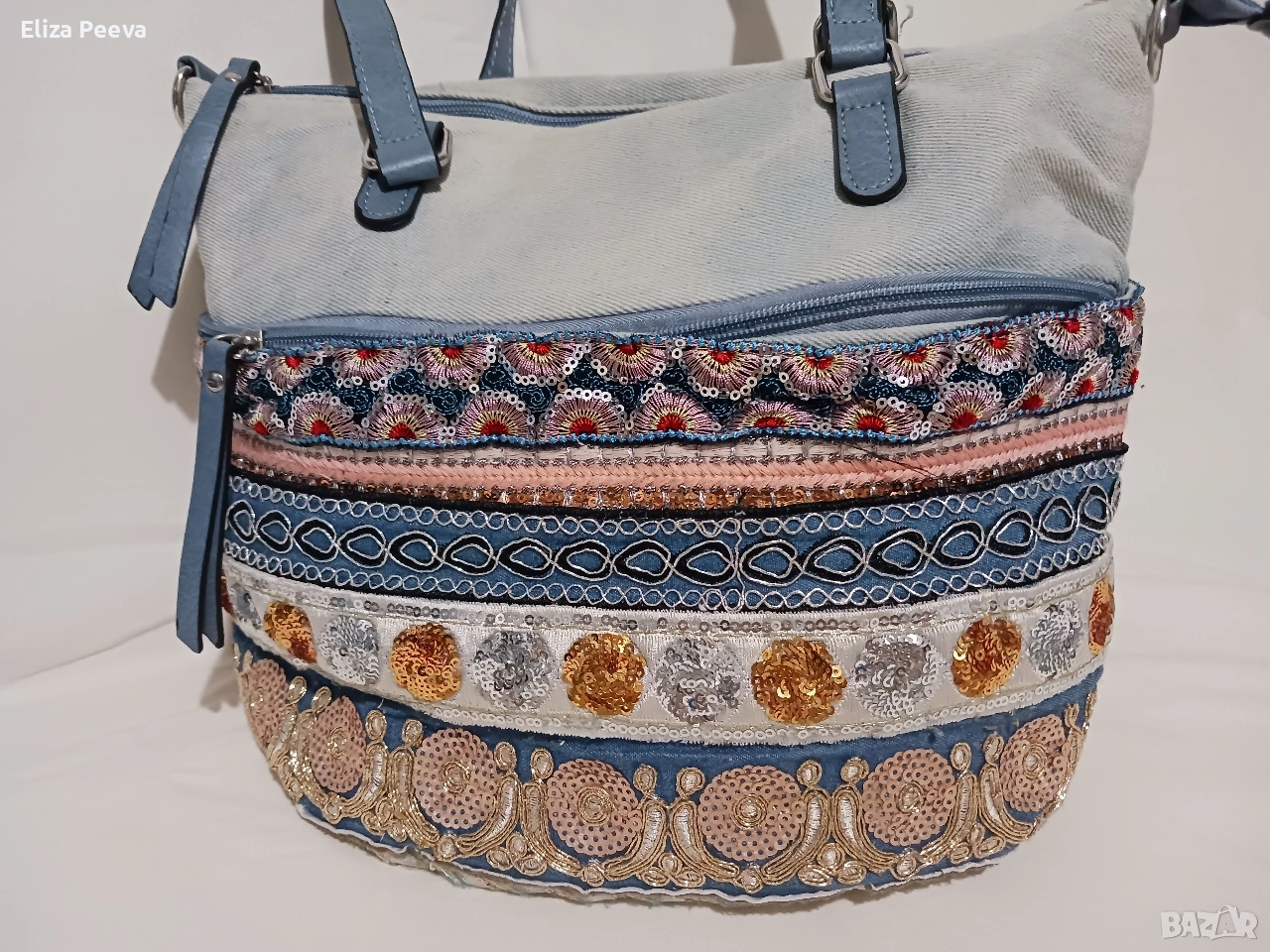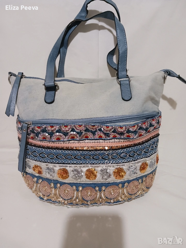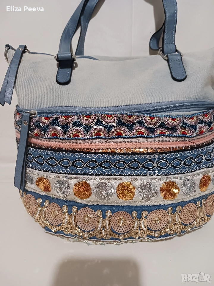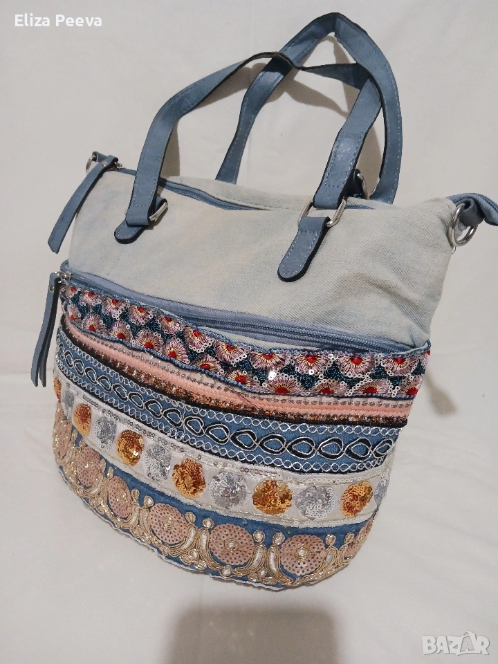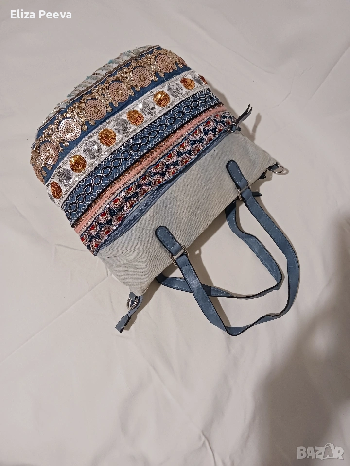 Чанта в сини нюанси с паети.