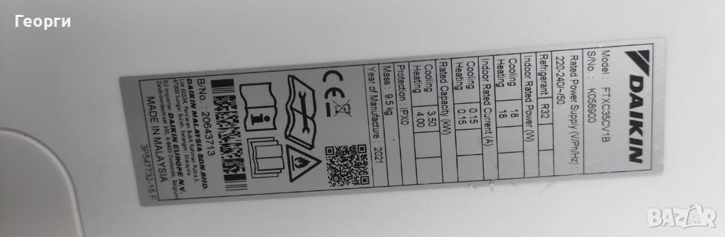 Параметри на климатизатора при 35°C външна температура (27° в помещението):