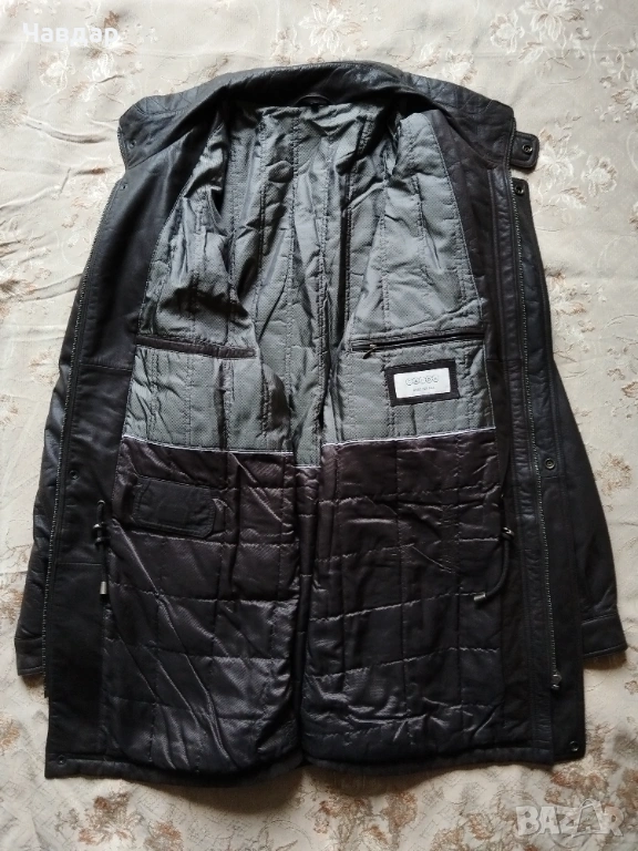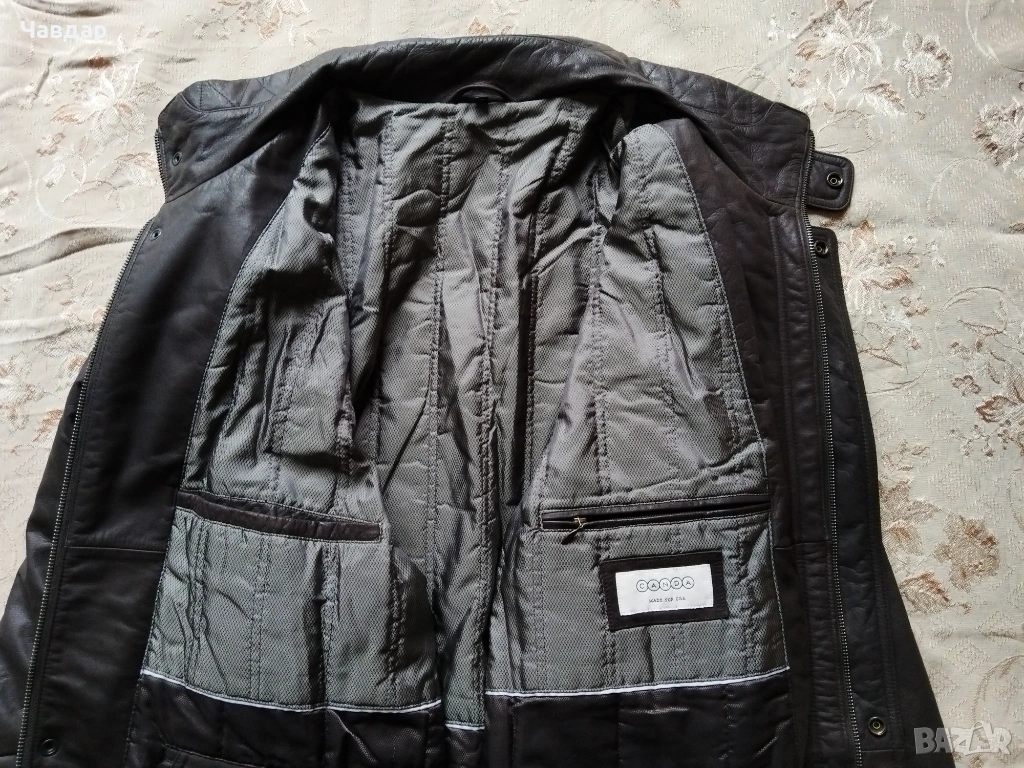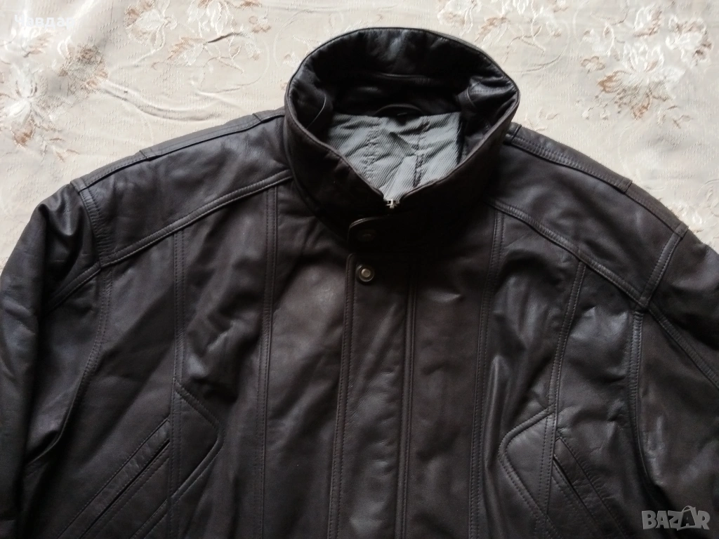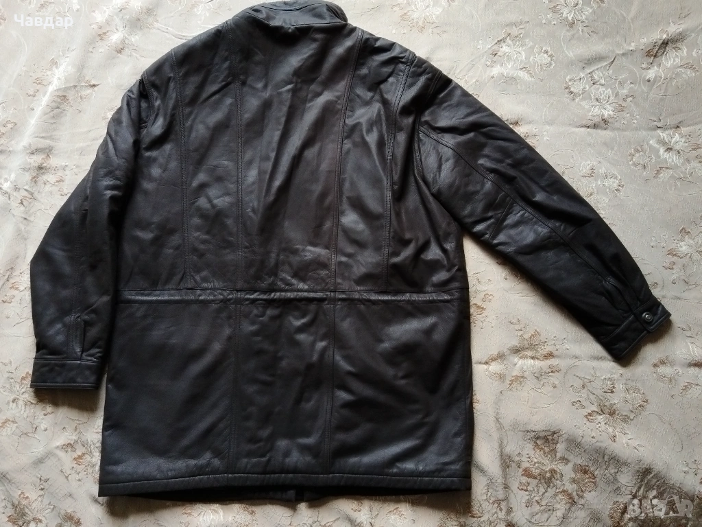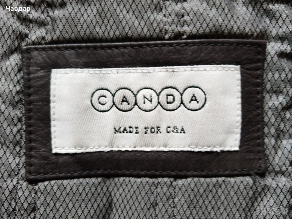 Елегантно мъжко кожено яке CANDA. Тъмнокафяво от лека и мека висококачествена агнешка кожа. Закопчаване - цип и копчета "тик-так". Шнур за пристягане в кръста. Подходящо и за официално облекло. Шест външни джоба и три вътрешни. Размер по етикет - 56 (XXL). Размери: рамо - 60 см., подмишници - 68 см., височина до яката (гръб) - 86 см., ръкав външно - 60 см., ръкав втр. - 50 см. Състояние - практически ново. Цена - 45 евро.
