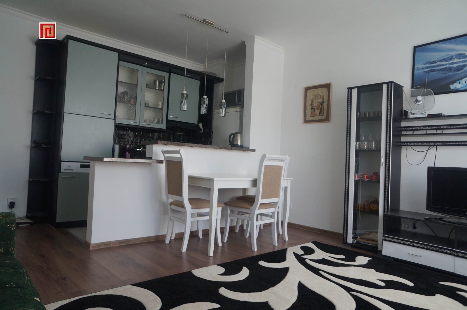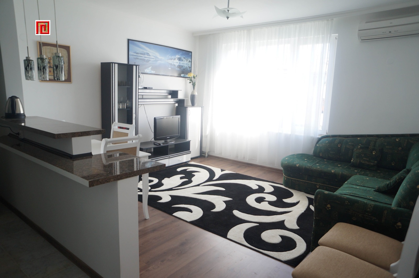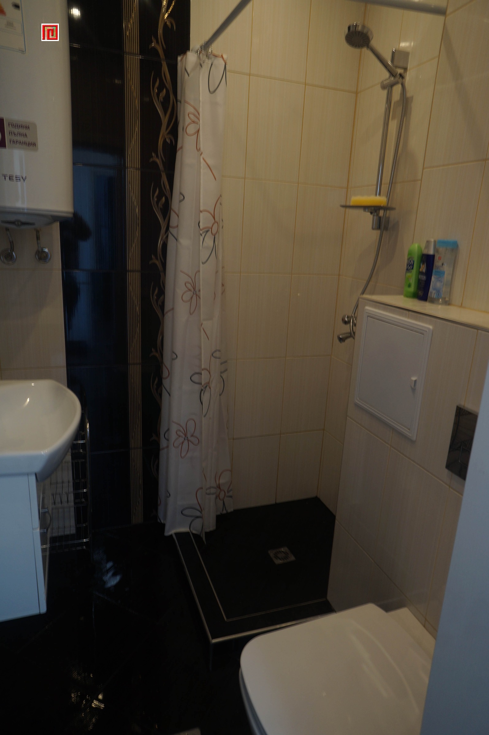 Светъл панорамен апартамент, напълно обзаведен и подходящ за сам човек или двойка. Сградата се намира във високата част на Редута в близост до парка Гео Милев и спирка на автобус 72. Апартаментът се състои от оформен кухненски бокс с дневна, широка спалня, баня, балкон, на който се излиза от спалнята и входно антре. Отоплението е решено чрез високоефективен климатик, което гарантира ниски разходи и икономичен конвекторен радиатор. Изложението е изцяло южно и е много топъл през студениете месеци. Обзавеждането включва ъглов диван с функция сън, секция, телевизор, трапезна маса със столове. Кухнята е оборудвана и включва пералня, малка миялна машина, керамични котлони и фурна, голям хладилник, микровълнова фурна. В спалнята има двойно легло, секция с гардероб, малко диванче и остава достатъчно пространство за работно място. Bright, panoramic, one bedroom apartment, fully furnished, located on the fourth floor (no elevator). The apartment consists of a kitchenette with a living room, a large bedroom, bathroom and balcony.