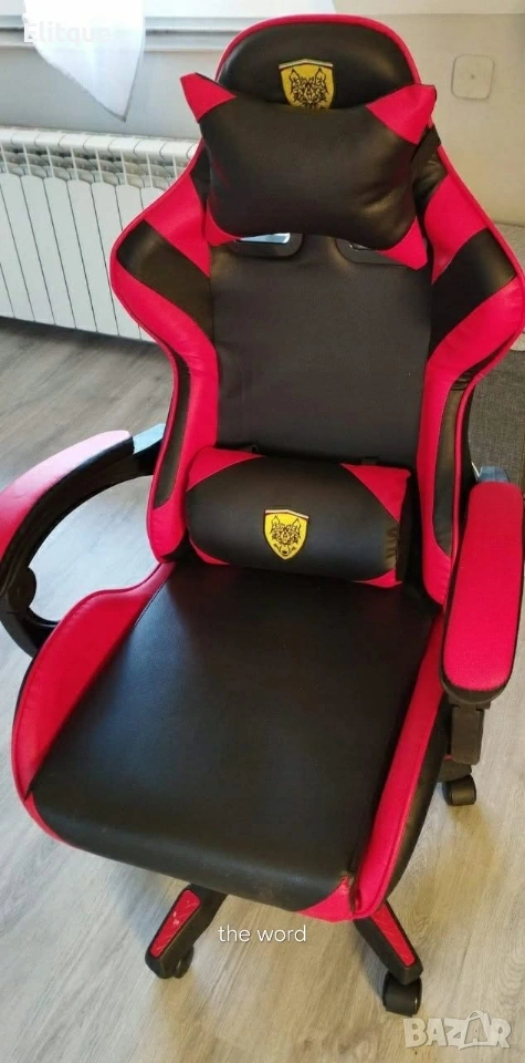 Удобен геймърски стол с поставка за крака и масажна лумбална възглавница, Черно-червен