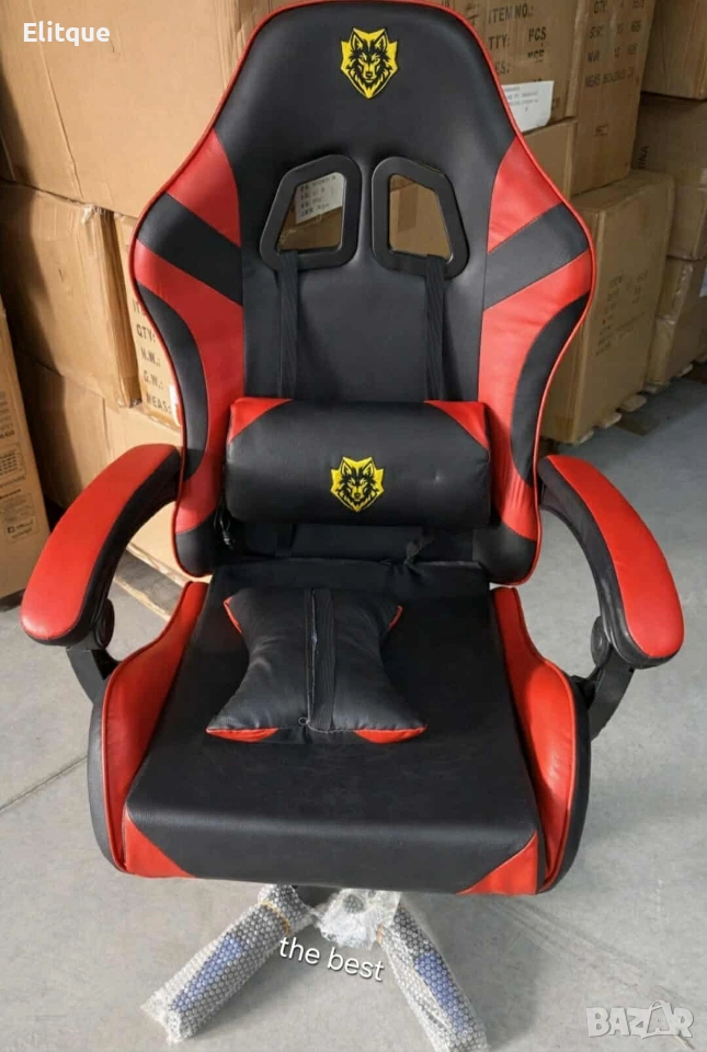 Общи размери: 66 см (ширина) x 60 см (дълбочина) x 106 см (височина). Вътрешна структура: Бронирана метална рамка за максимална стабилност. Пълнеж: Висококачествена нова пяна — до 7,5 см дебелина. Тапицерия: Издръжлива и лесна за почистване PU екокожа. Основа: Подсилен наситено черен найлон с колелца за плавно движение. Система за релаксация: Лумбална възглавница с масажна функция, захранване чрез USB. Дизайн: Геймърски профил с ергономична форма и подвижна поставка за крака.
