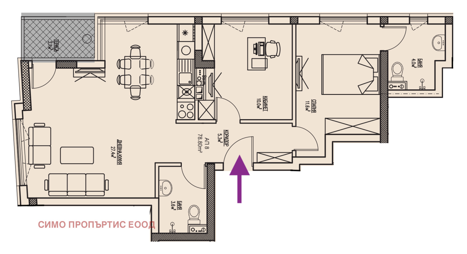 Продава се тристаен апартамент в нова сграда на ул. Екзарх Йосиф в нова и модерна сграда изпълнена с материали от най-висок клас. Апартамента се намира на трети етаж, над него има още три етажа. Асансьор. Изложението е север - запад. Апартаментът се състои от предверие, дневна с трапезария и кухненски бокс,основна спалня с баня и тоалетна към нея, втора по-малка спалня или кабинет, втора баня с тоалетна и тераса. Чистата квадратура на апартамента е 78,80 кв.м. Предава се на шпакловка и замазка. Строителството на сградта е в сравнително начален етап. Разрешение за ползване се очаква през есента на 2026 г. Мястото е много удобно и комуникативно. В близост в радиус на 500 метра има спирка на метро, спирки на градския транспорт, голяма верига супермаркет, много хубава градинка за отдих и др. Би могло да се купи и гараж в сградата!