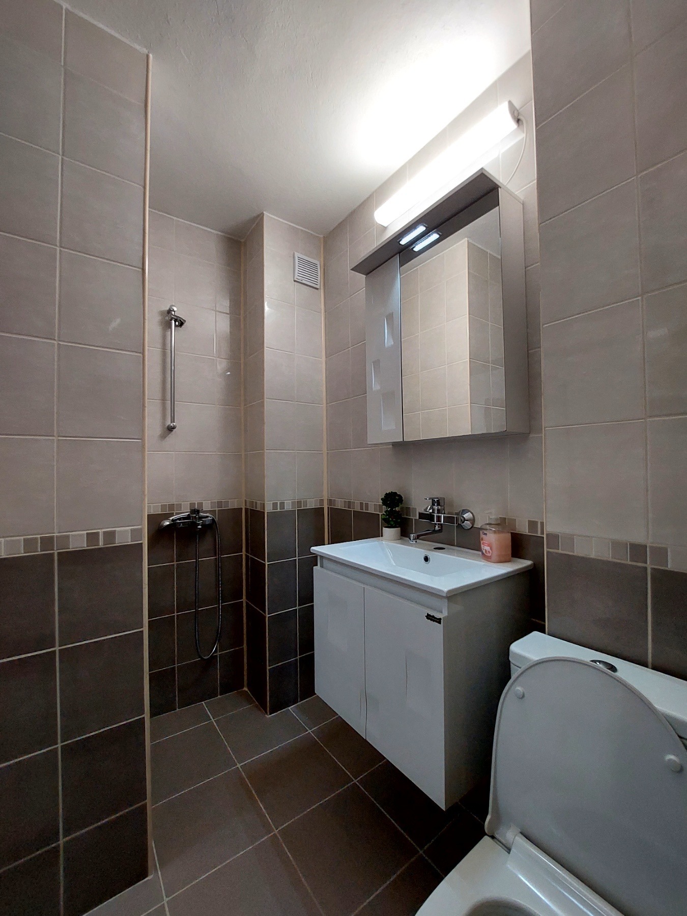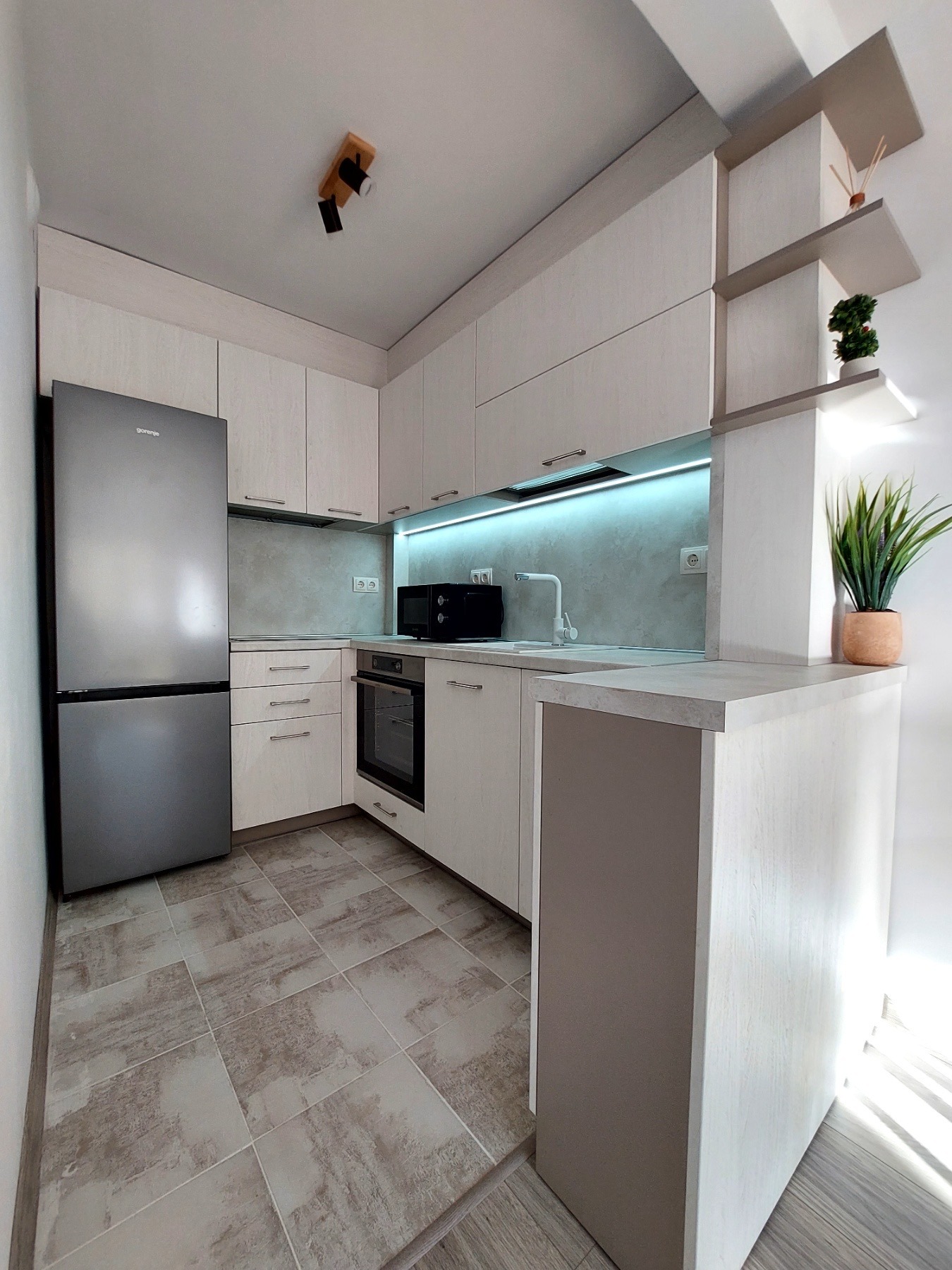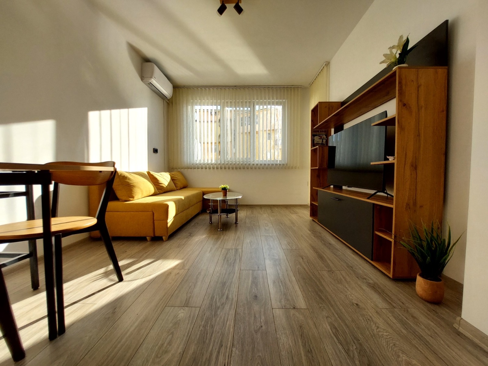 Двустаен, изцяло южен апартамент в кв. Колю Фичето, търси своите нови наематели. Изключително светъл и топъл с ниски сметки, той се състои от антре, спалня, хол с кухненски бокс, баня с тоалетна и остъклена тераса. Апартаментът е след основен ремонт с чисто нови мебели, настилки и електроуреди. Разполага с всичко необходимо за нанасяне, включително климатик, съдомиялна, аспиратор, пералня, телевизор и др. Намира се на отлична локация, трети междинен етаж, на комуникативно място близо до супермаркети, паркове, детски градини, училища и търговски обекти.