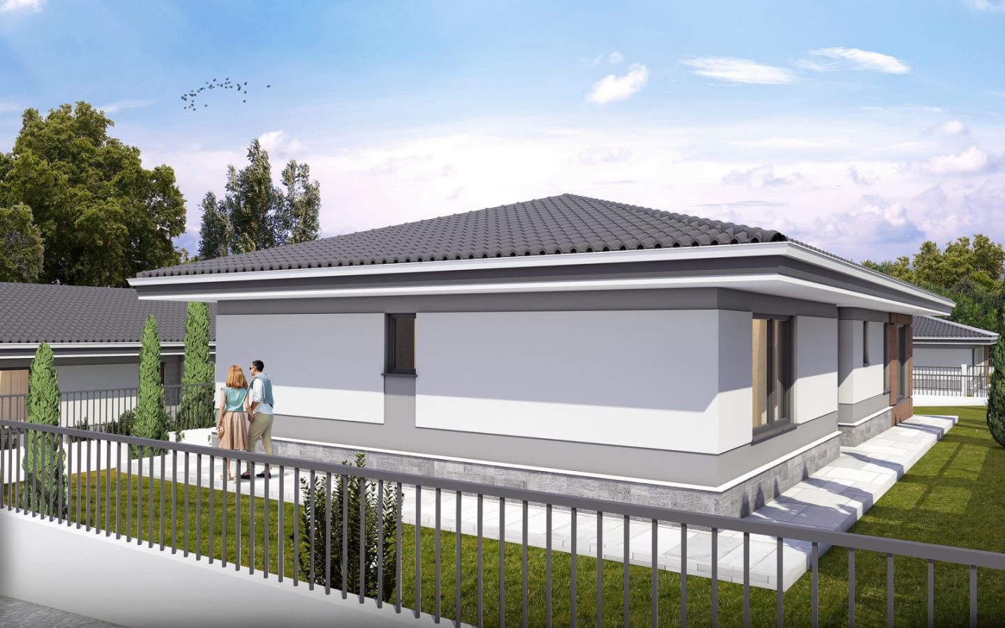 БЕЗ КОМИСИОННА! МИХАЙЛОВА ИМОТИ предоставя на Вашето внимание предложение за дом, съчетаващ комфорт, функционалност и простор в съвременен жилищен комплекс от еднофамилни къщи, всяка разположена в самостоятелен парцел с площ, започваща от 750 кв.м. Къщите са едноетажни, масивно строителство, с обща застроена площ от 145 кв.м, проектирани с внимание към всеки детайл и изградени с висококачествени материали, отговарящи на всички съвременни строителни стандарти. Разпределението е отлично балансирано, като предлага уют на цялото семейство. Всяка къща разполага с просторен и светъл дневен тракт, обединяващ кухня, трапезария и всекидневна с директен излаз към уютна веранда идеалното място за отдих или срещи с близки. Налице са три самостоятелни спални, едната от които е със собствен санитарен възел и удобно обособен дрешник. Допълнително са предвидени втора баня с тоалетна, функционален коридор, както и практично складово помещение.