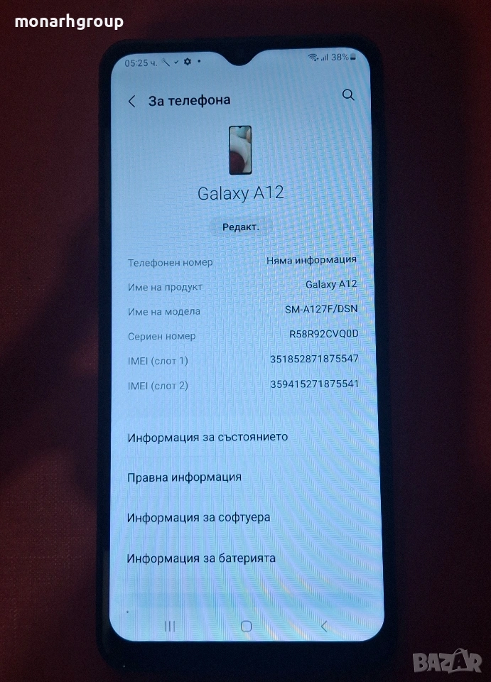 Телефон Samsung Galaxy a12 / 128GB/ 4GB RAM, снимка 1 - Samsung - 53490057 Телефон Samsung Galaxy a12 / 128GB/ 4GB RAM, снимка 2 - Samsung - 53490057 Телефон Samsung Galaxy a12 / 128GB/ 4GB RAM, снимка 3 - Samsung - 53490057 Телефон Samsung Galaxy a12 / 128GB/ 4GB RAM, снимка 4 - Samsung - 53490057 1/4