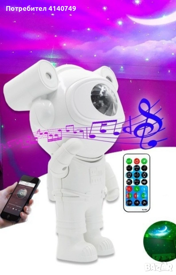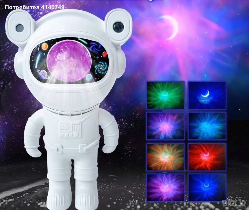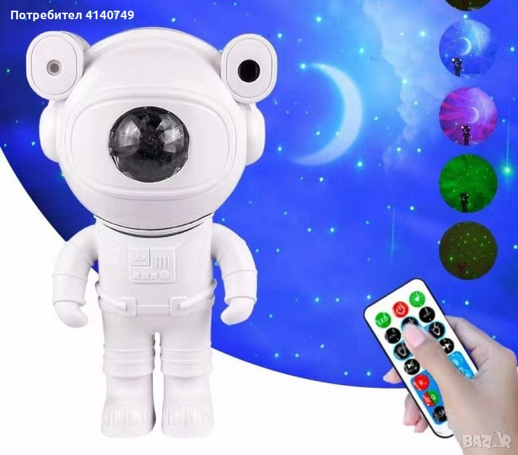 Лампа астронавт с 12 различни светлинни ефекти: Освети космоса в твоята стая → Обява 53490085