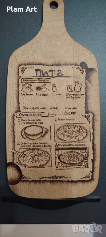 Ръчно изработена с пирограф дъска за рязане,запепатала в себе си традиционна българска рецепта. Уникален подарък за ежедневна употреба, както и за декорация.