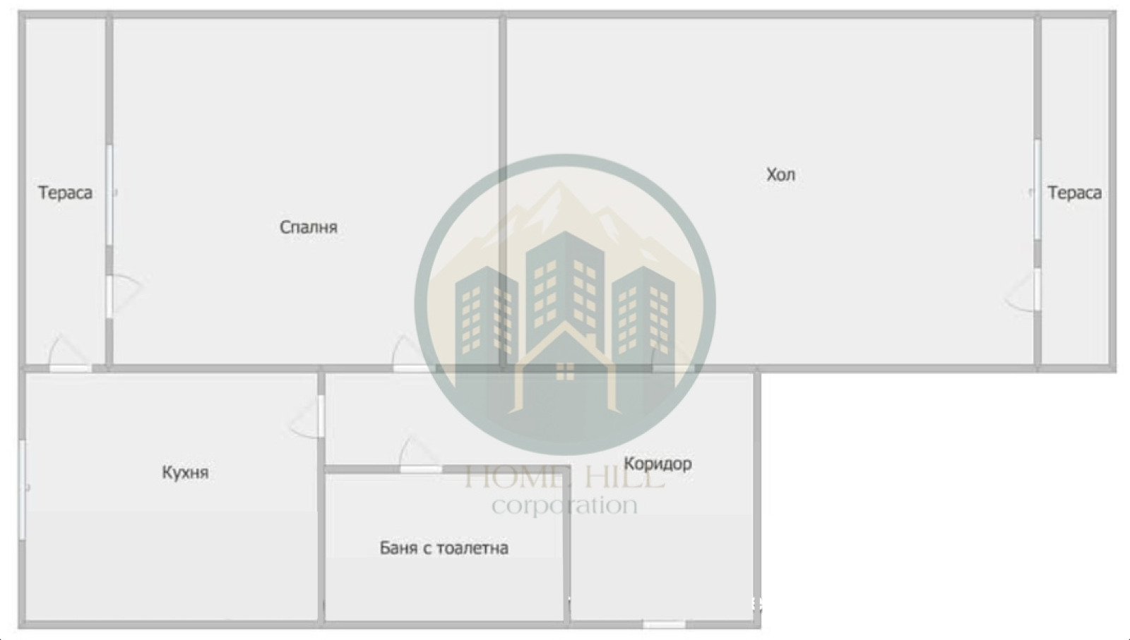 Състои се от следното разпределение: коридор, дневна , спалня, отделна кухня, баня с тоалетна (сменени щрангове), две тераси.