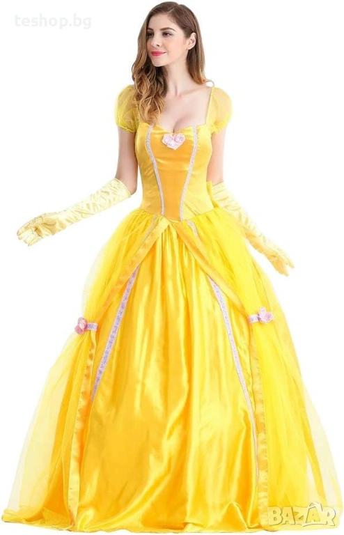Дамска рокля, костюм на Бел, за възрастни, „Красавицата и Звяра“ размер М + ръкавици
